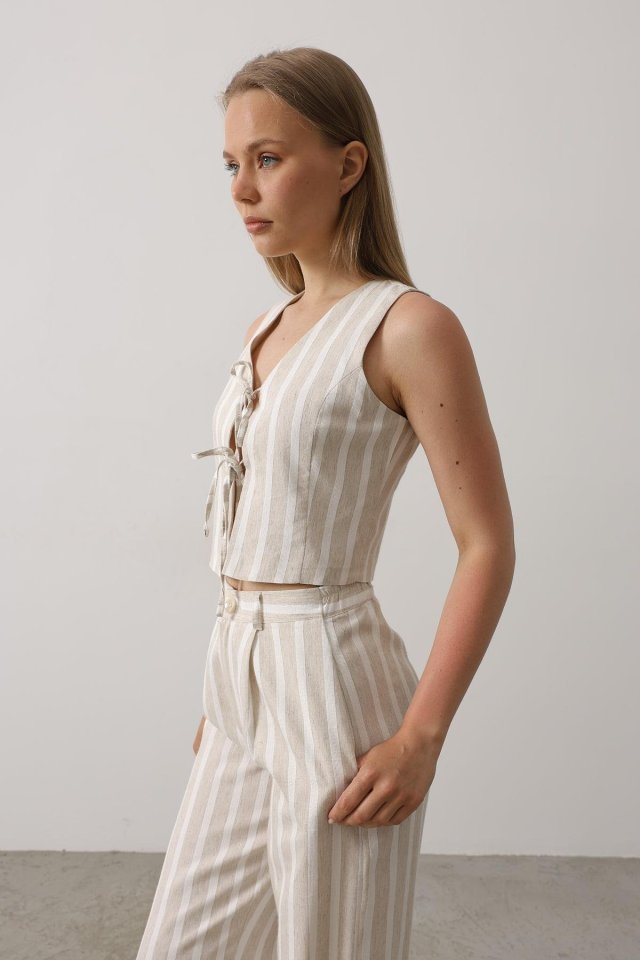 Kadın Kolsuz Boyundan çapraz Geçirmeli Göğüs Damla Detay Kaşkorse Bluz