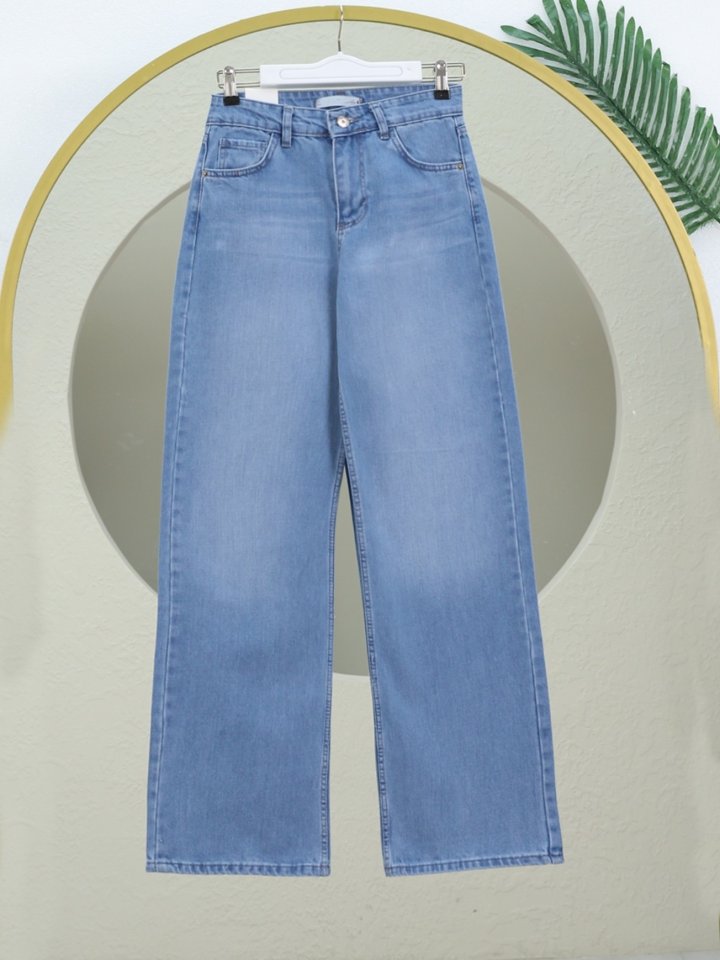 Çok Cepli Yüksek Bel Kot Pantolon -Buz Mavi