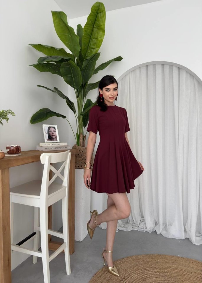 Kadın Kısa Kollu Yakası Açık Katlı Bürümcük Balon Elbise