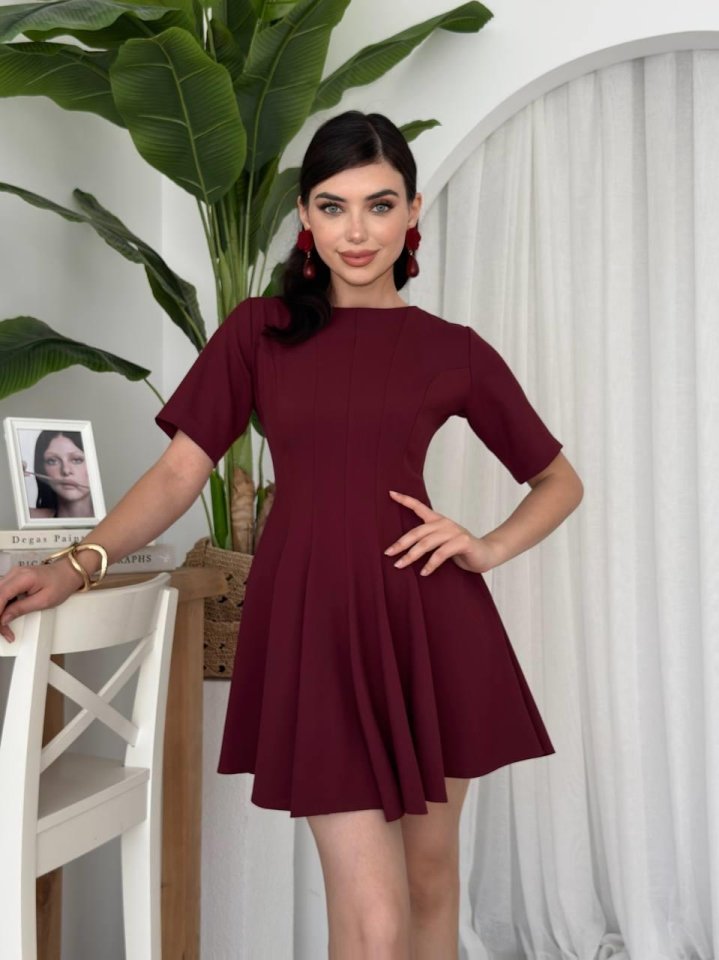 Kadın Kısa Kollu Yakadan Ve Etekten Fermuarlı Midi Viskon Iki Iplik Elbise