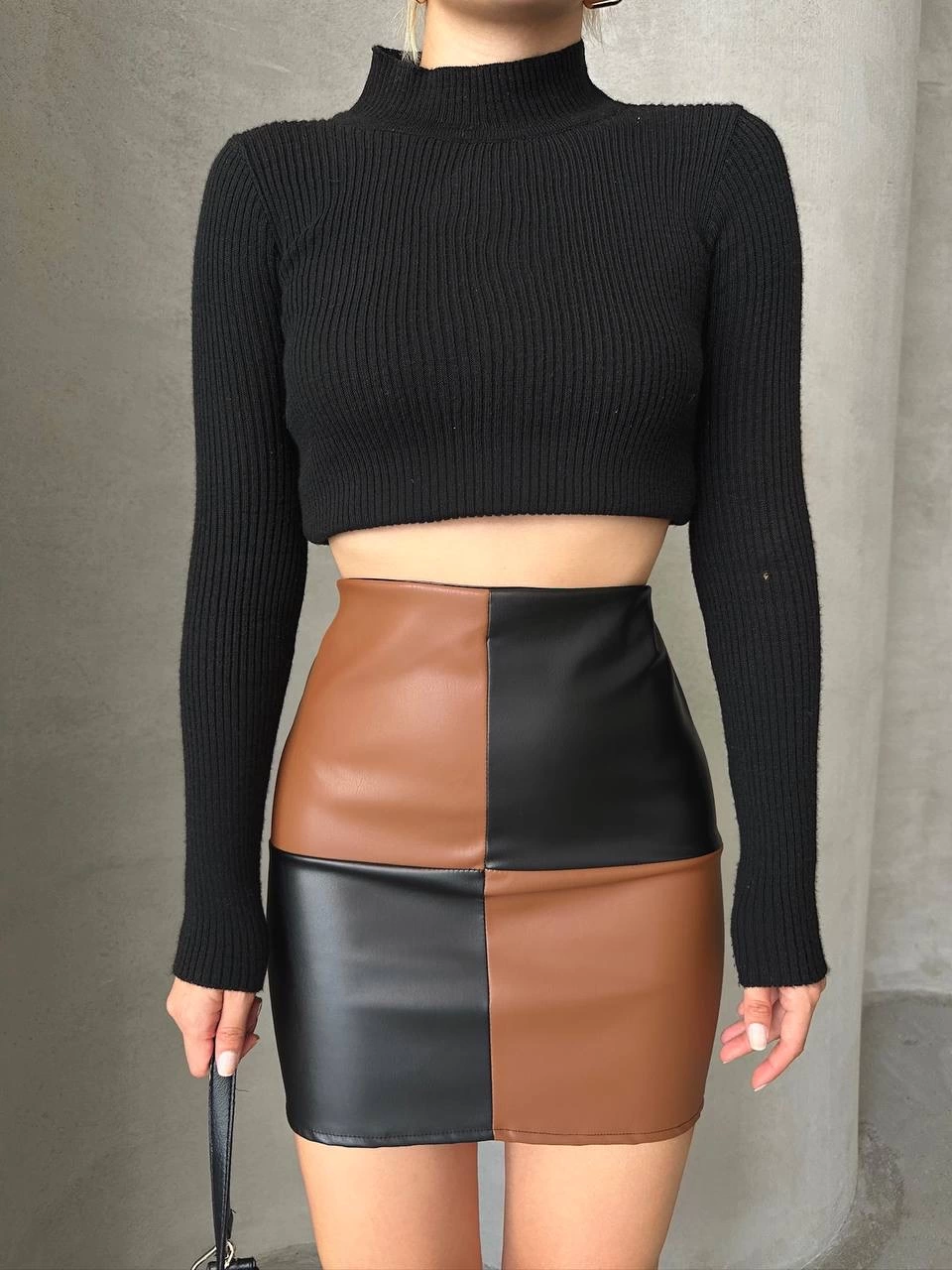 Crop Ceketli Ve Pile Etekli Garnili Takım 10111
