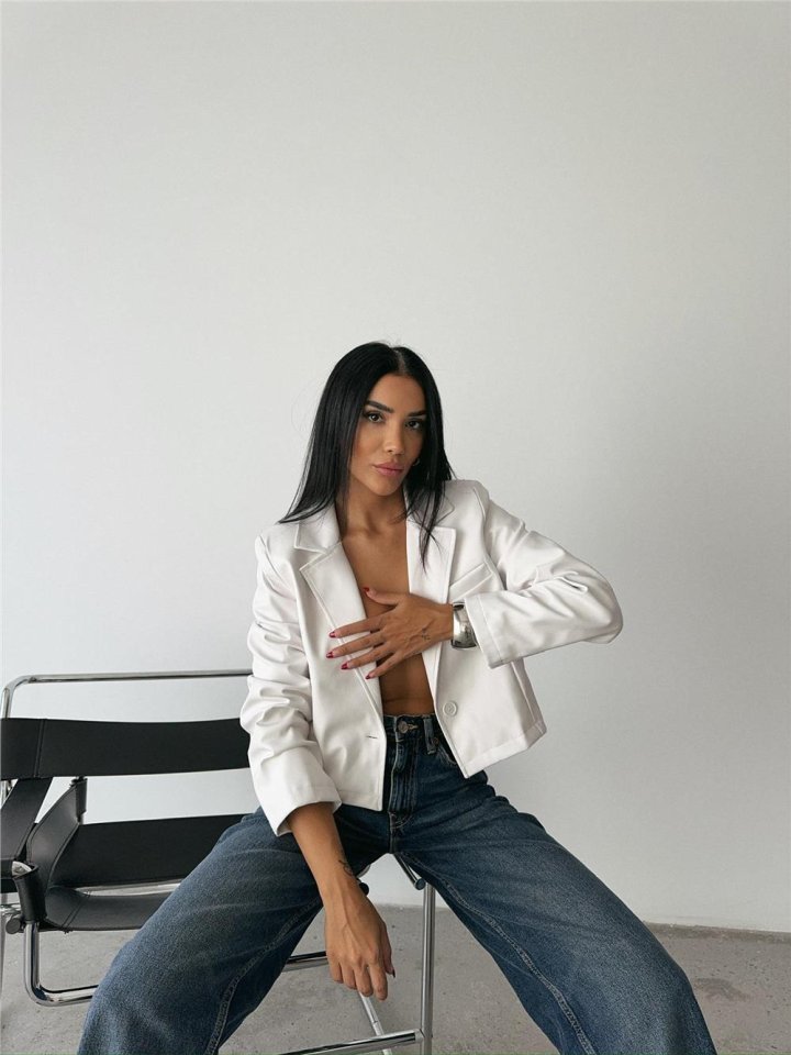 DERİ CROP CEKET TEK DÜĞME - Beyaz