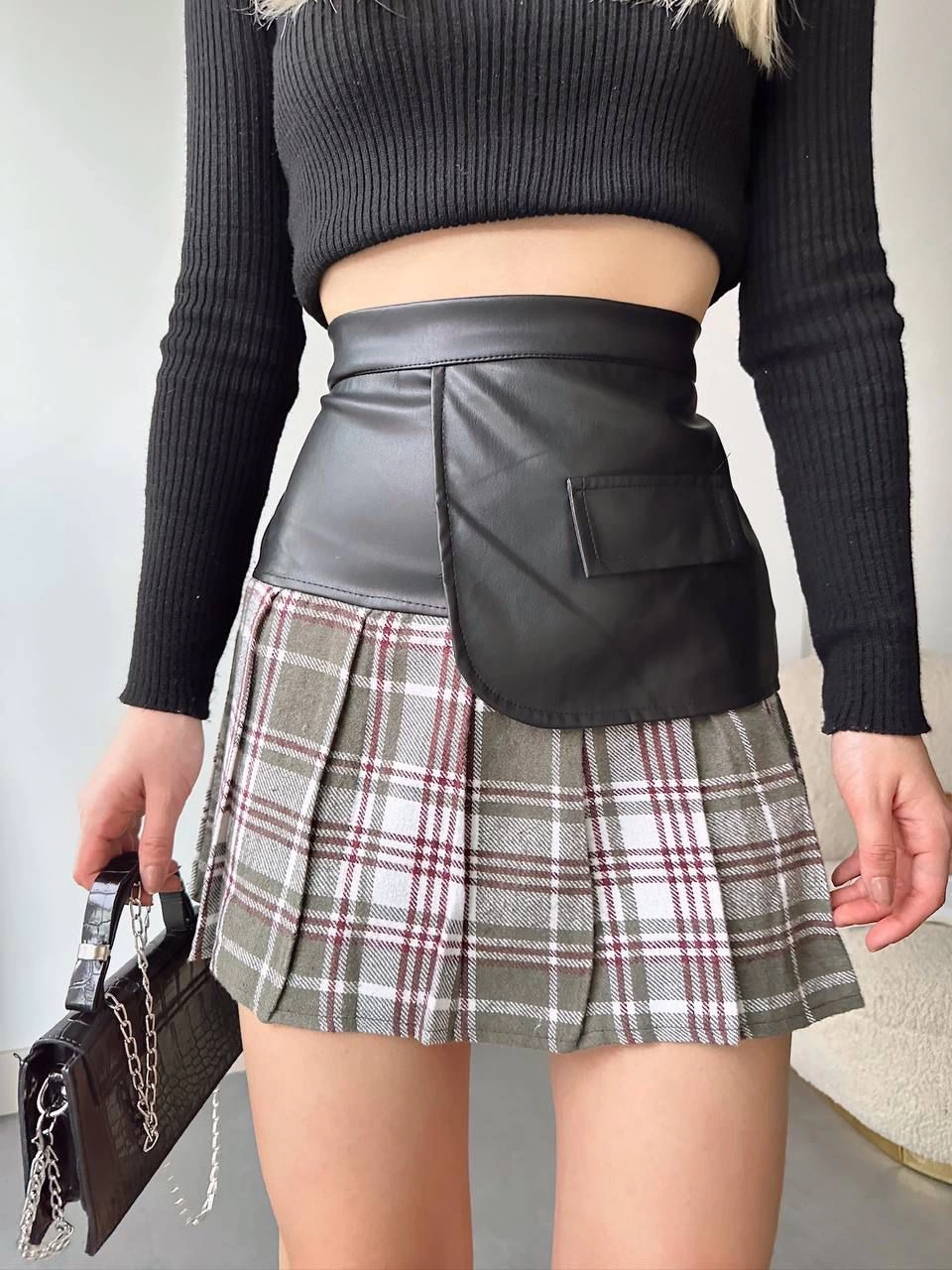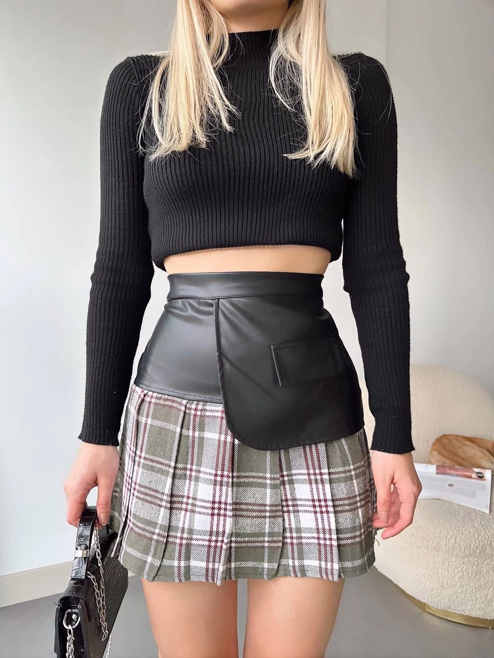 Crop Ceketli Ve Pile Etekli Garnili Takım 10111