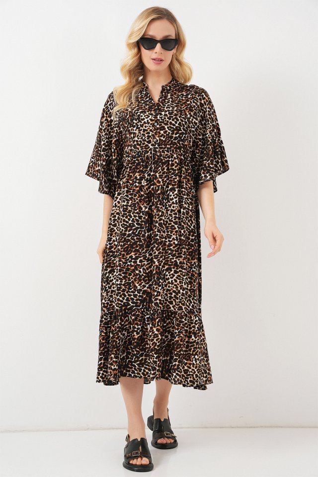 Desenli Kısa Kol Elbise 2562 - C. Kahverengi