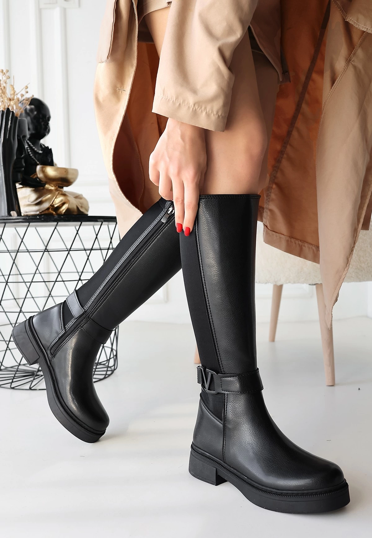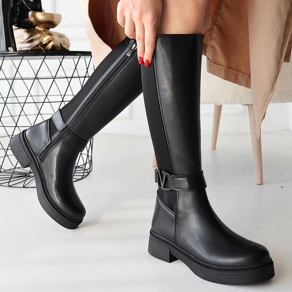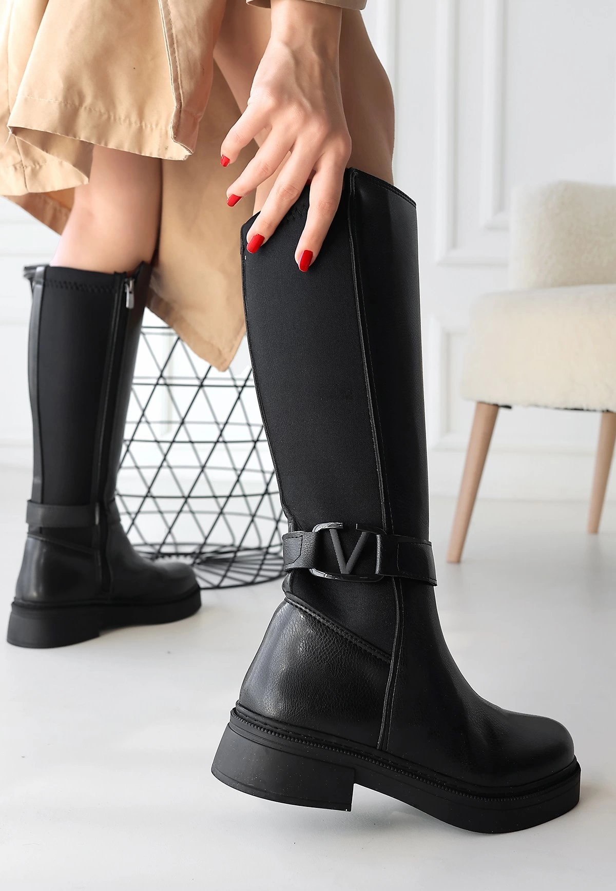 Kadın Uzun Kollu Yakadan Fermuarlı Kot Görünüm Desenli Uzun Modal Bluz