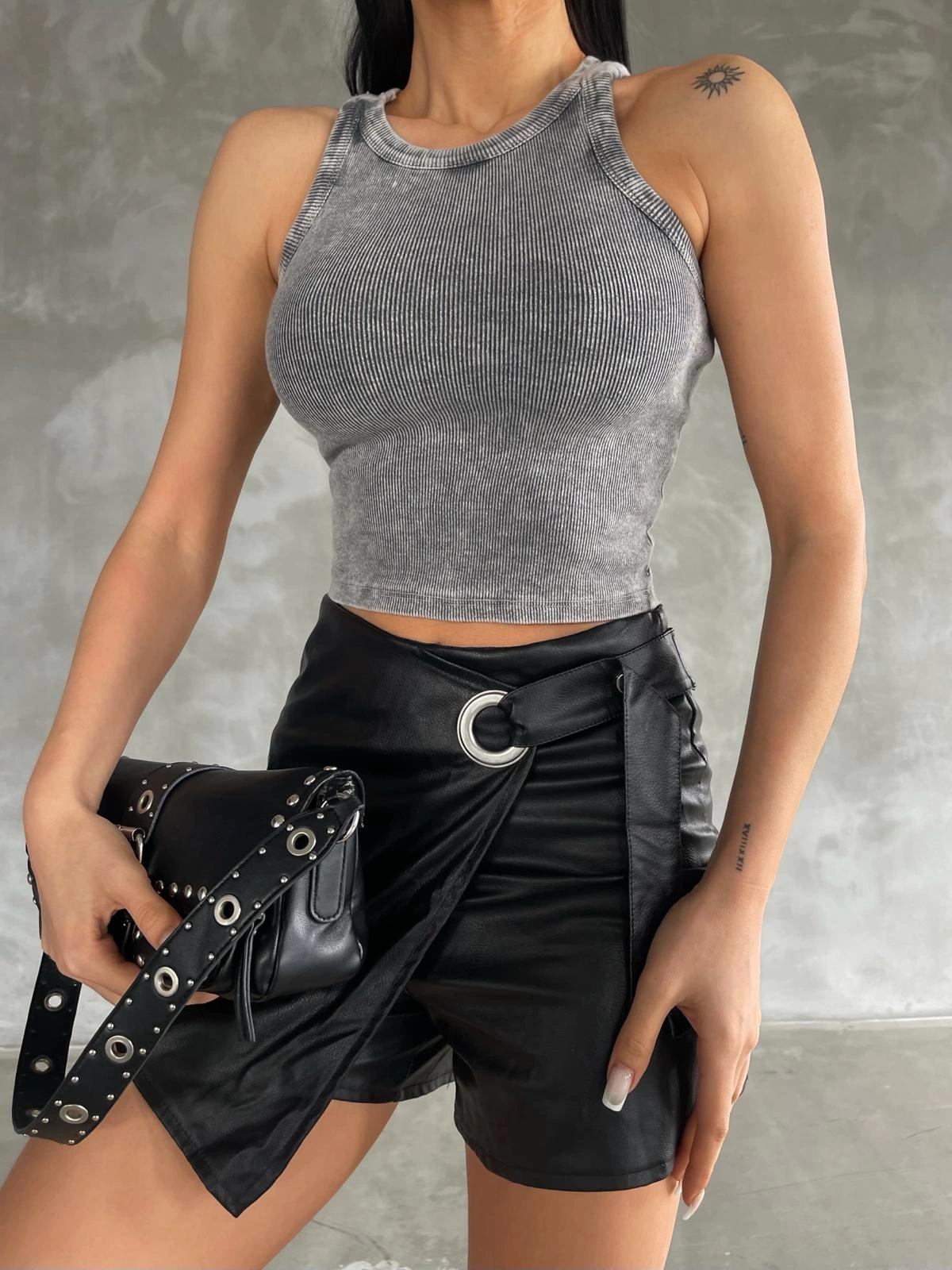 Kadın Kolsuz Boyundan çapraz Geçirmeli Göğüs Damla Detay Kaşkorse Bluz