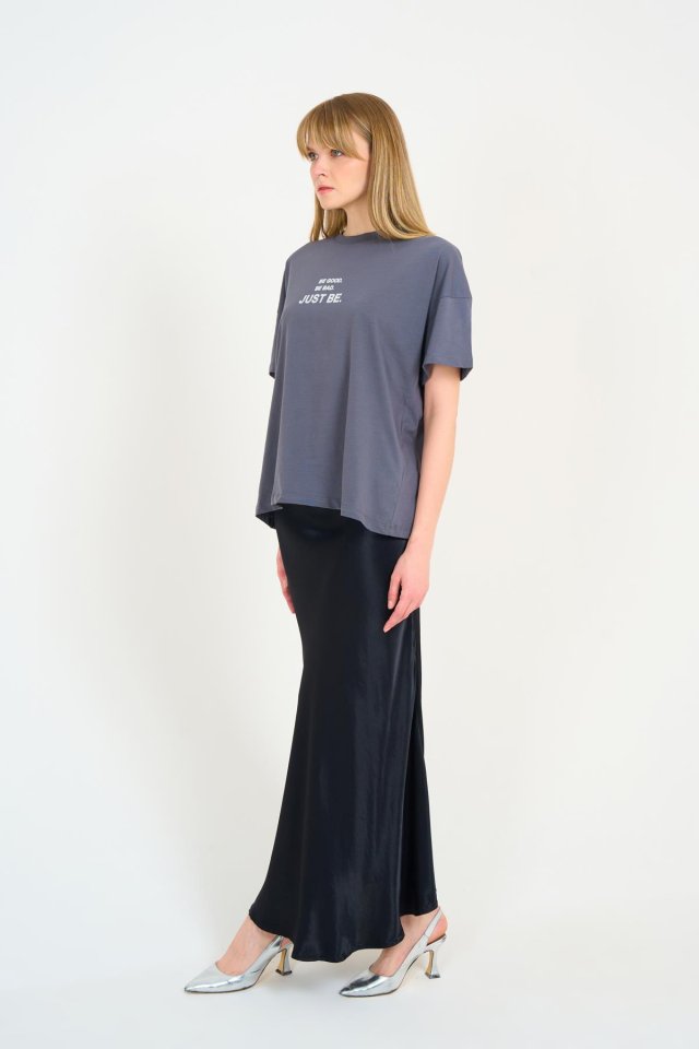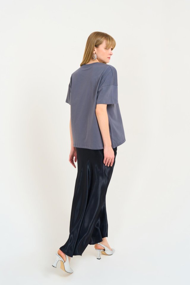 Kadın Uzun Kollu Tek Omuz Askı Detay Salaş Viskon Iki Iplik Bluz