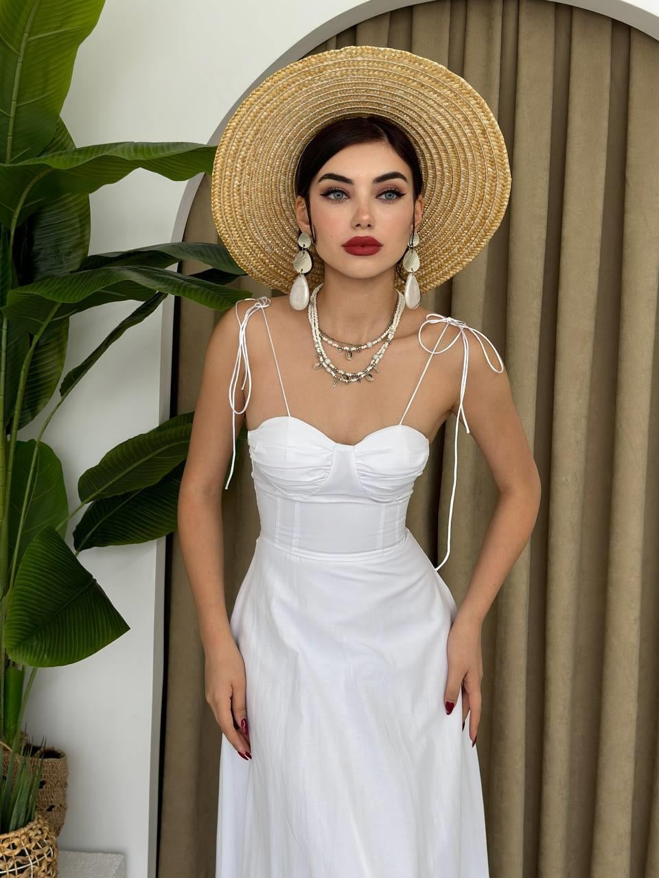 Kadın Kolsuz Boyundan çapraz Geçirmeli Göğüs Damla Detay Kaşkorse Bluz
