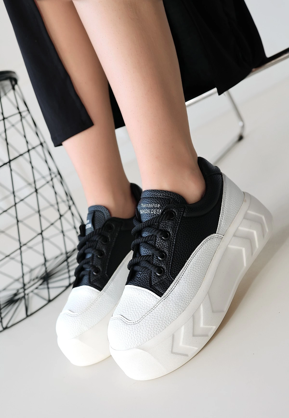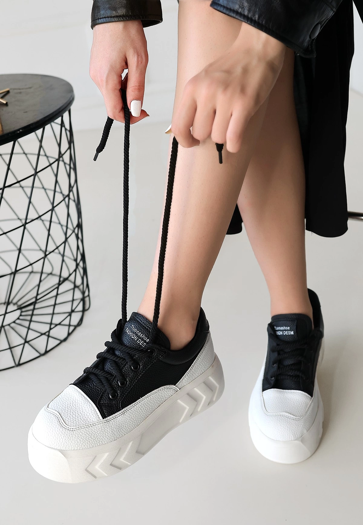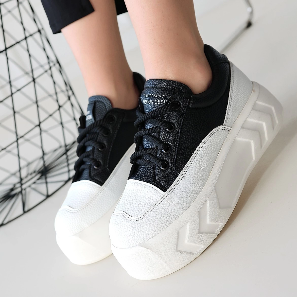 Emwa Siyah Cilt Bağcıklı Spor Ayakkabı