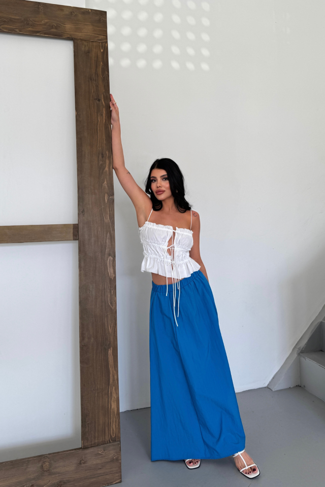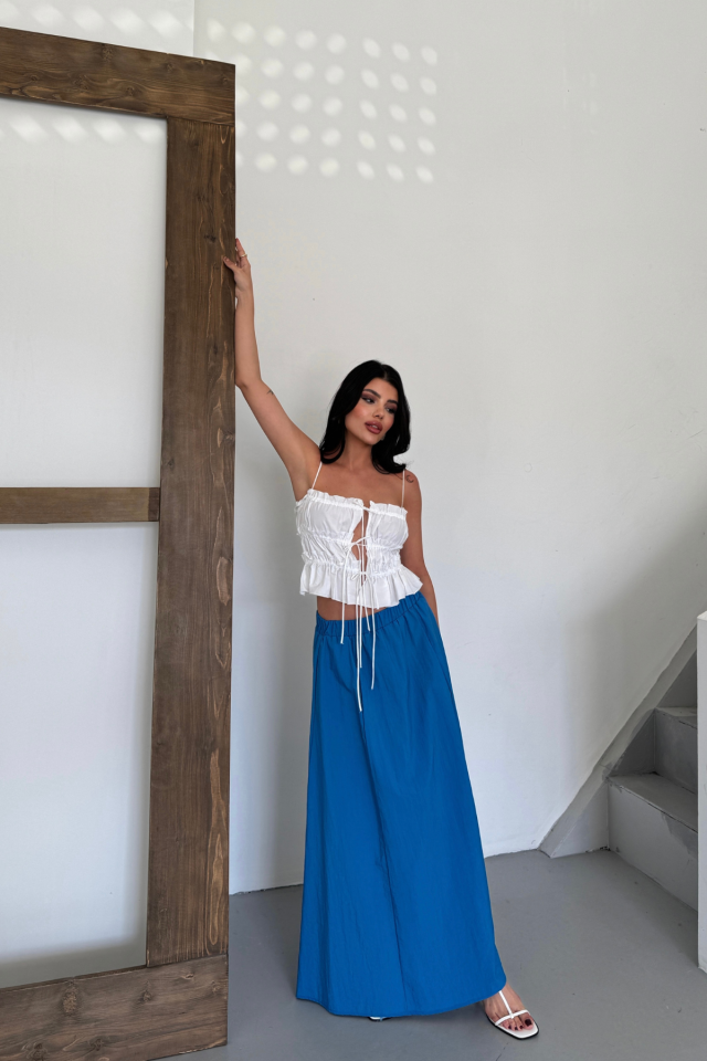Kadın Kolsuz Boyundan çapraz Geçirmeli Göğüs Damla Detay Kaşkorse Bluz