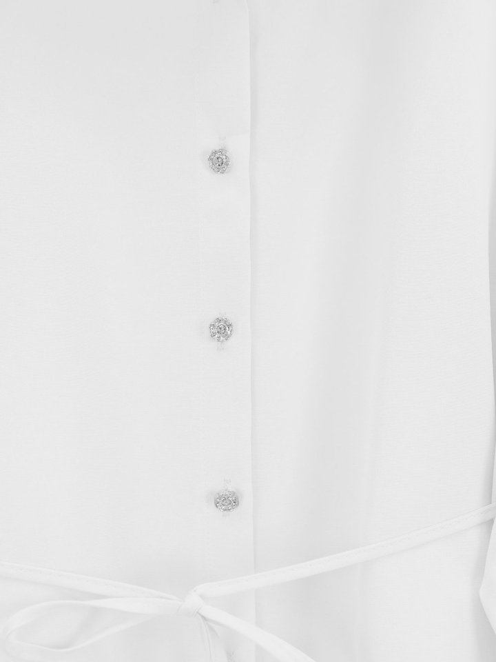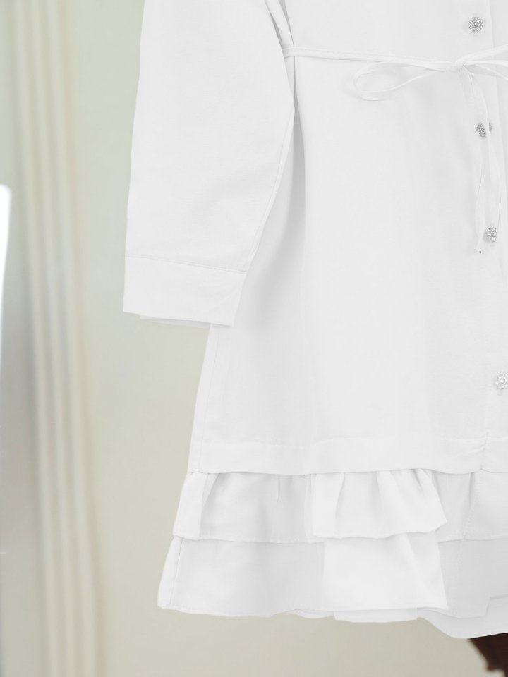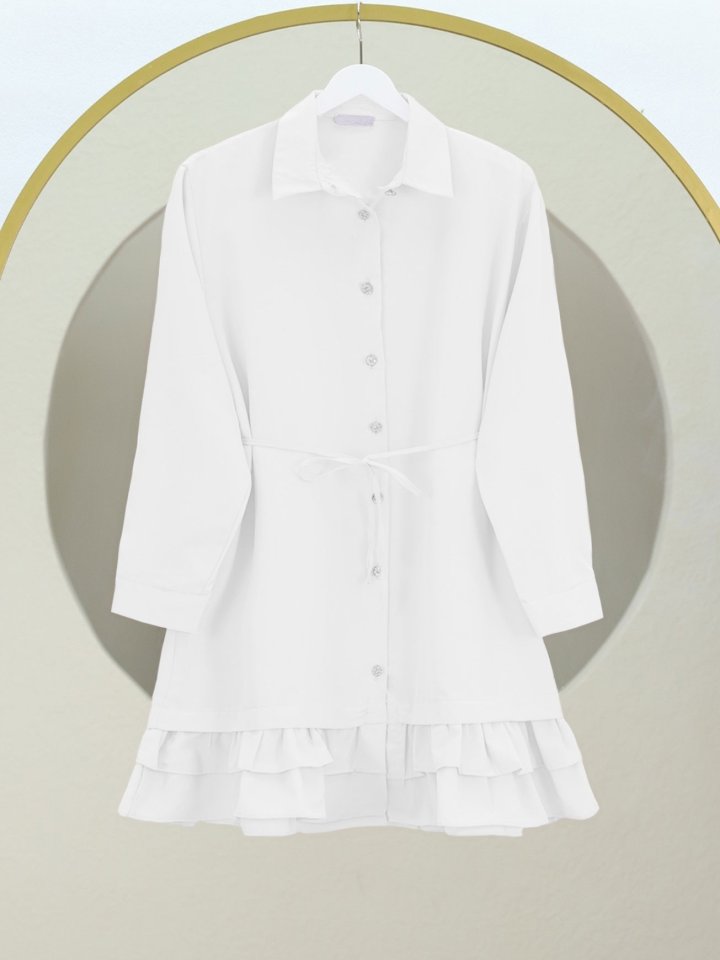Etek Ucu Katlı Fırfırlı Düğmeli Poplin Gömlek Tunik -Beyaz