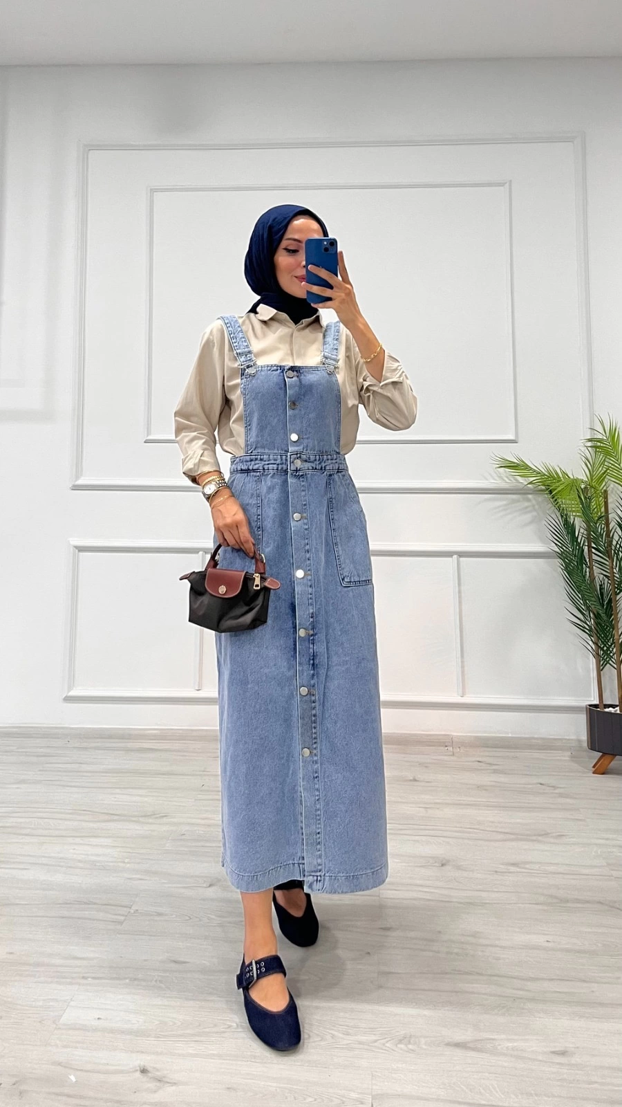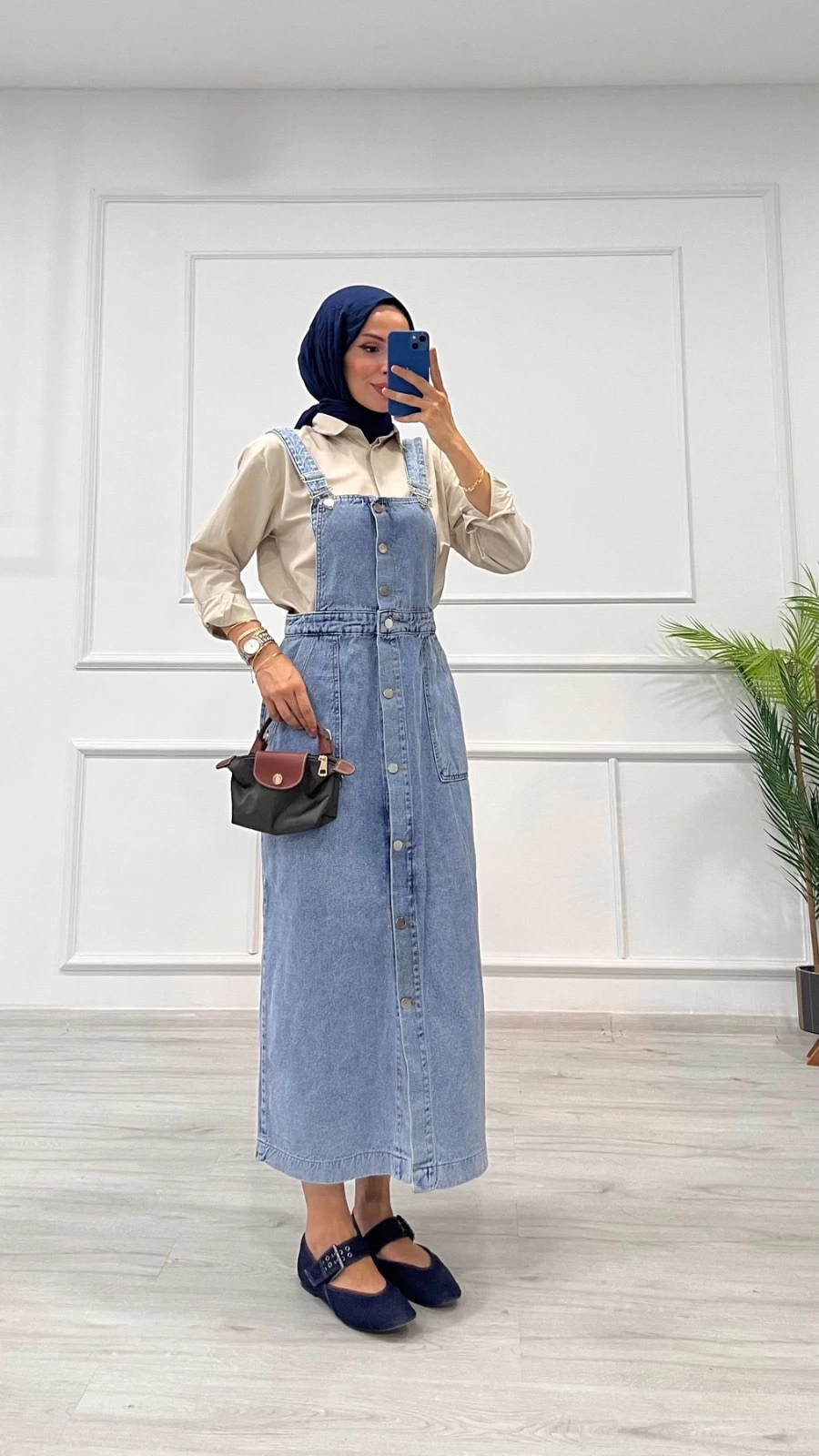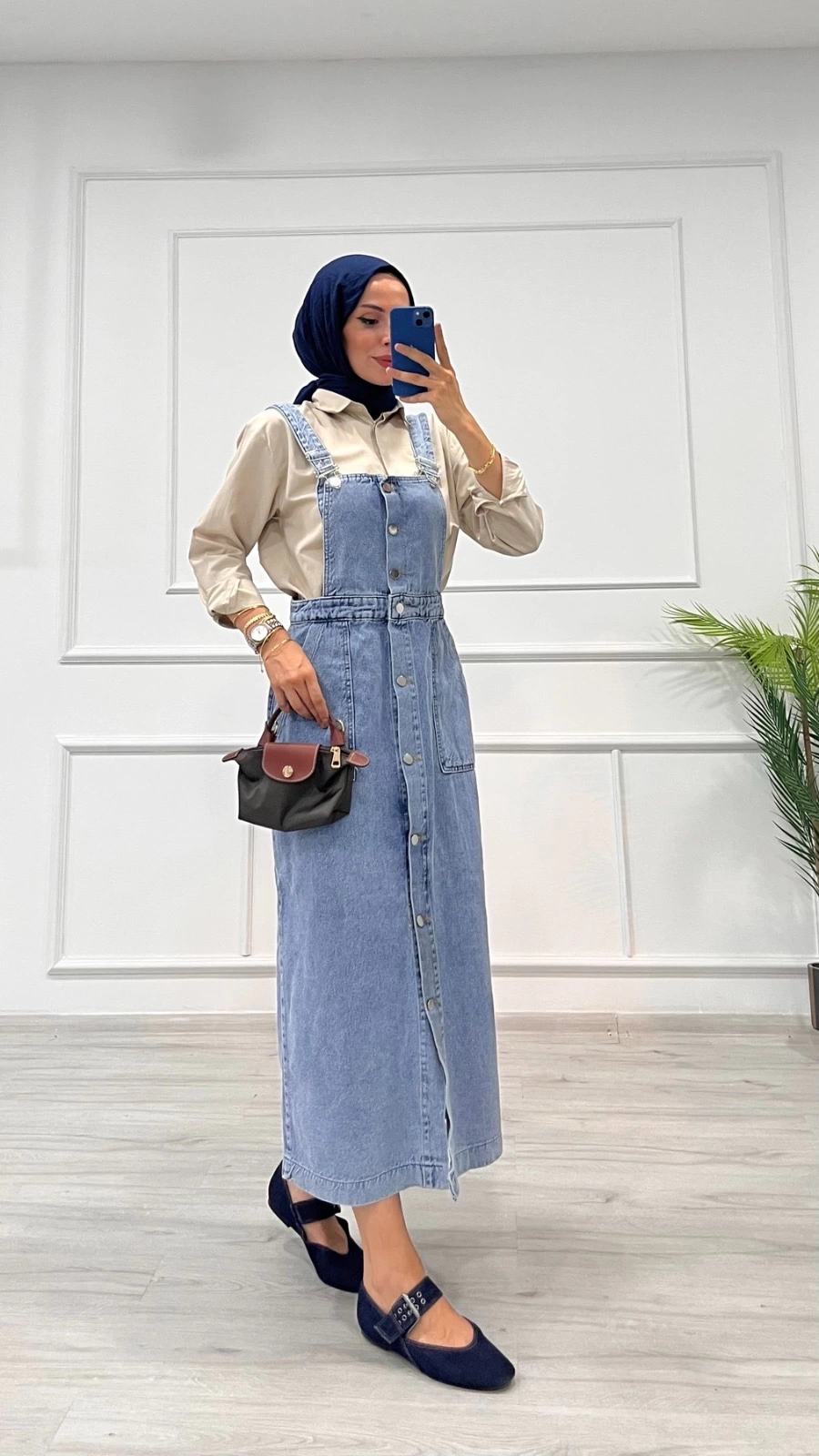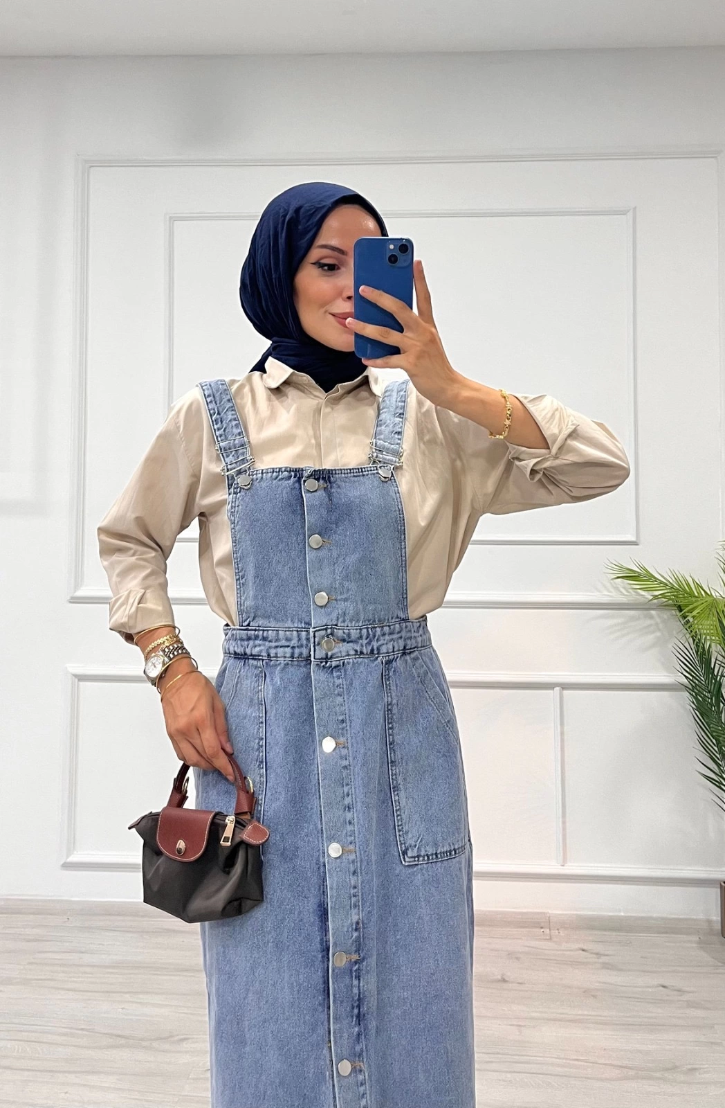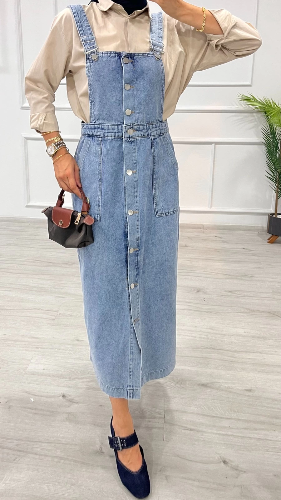 Etekli salopet enzim süper taş yıkama buz mavi d 2521