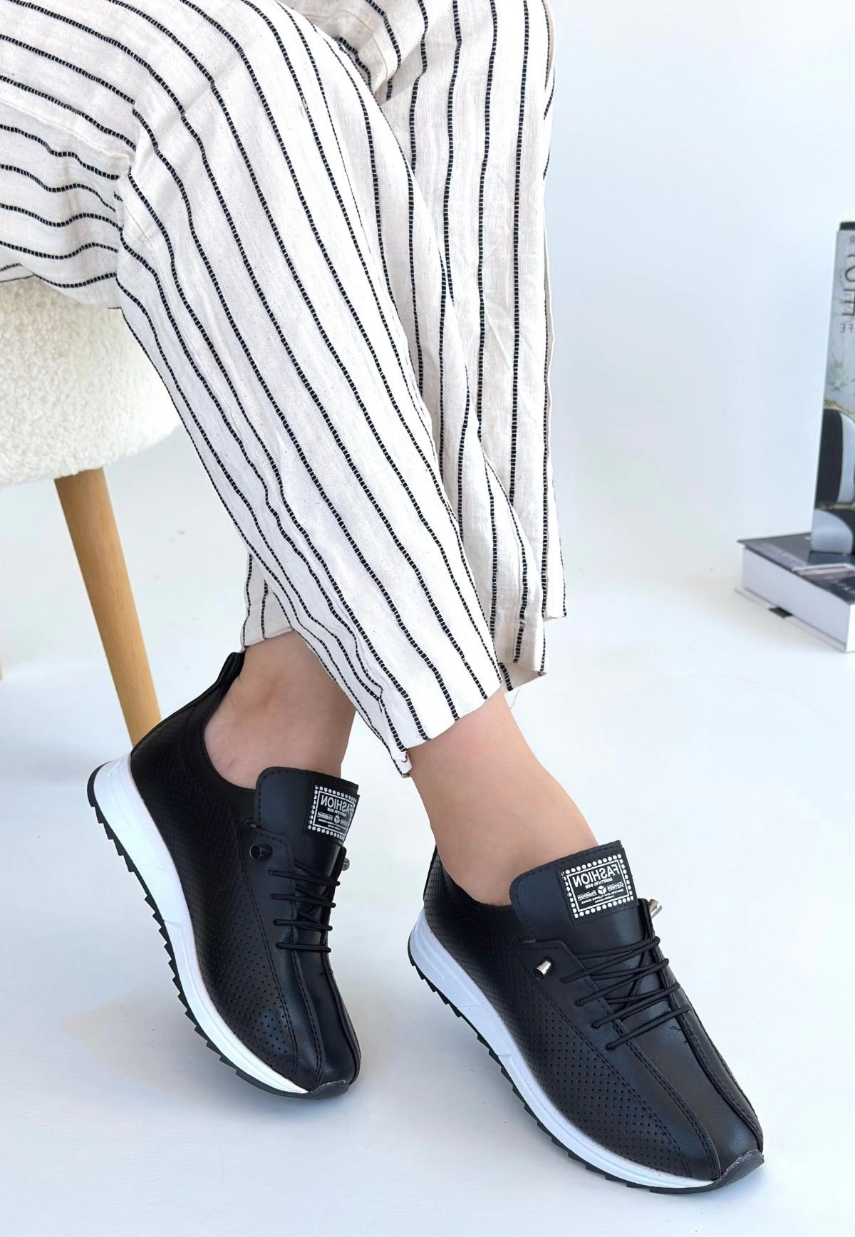 Fiert Siyah Cilt Bağcıklı Spor Ayakkabı