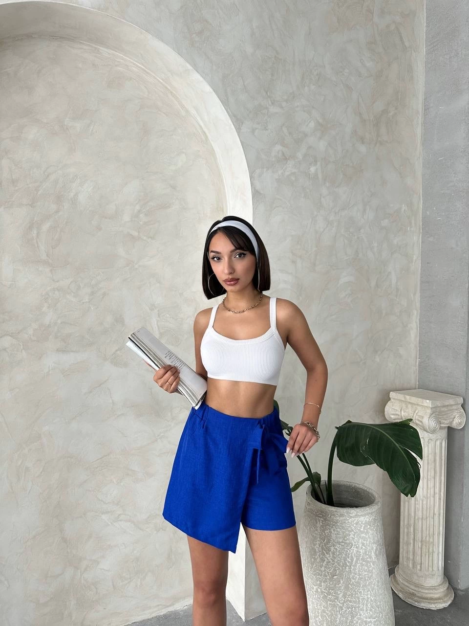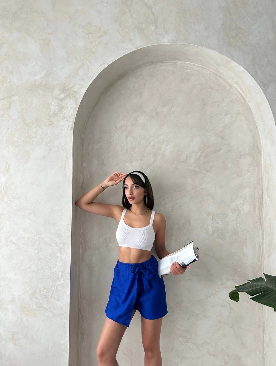 Kadın Kolsuz Boyundan çapraz Geçirmeli Göğüs Damla Detay Kaşkorse Bluz