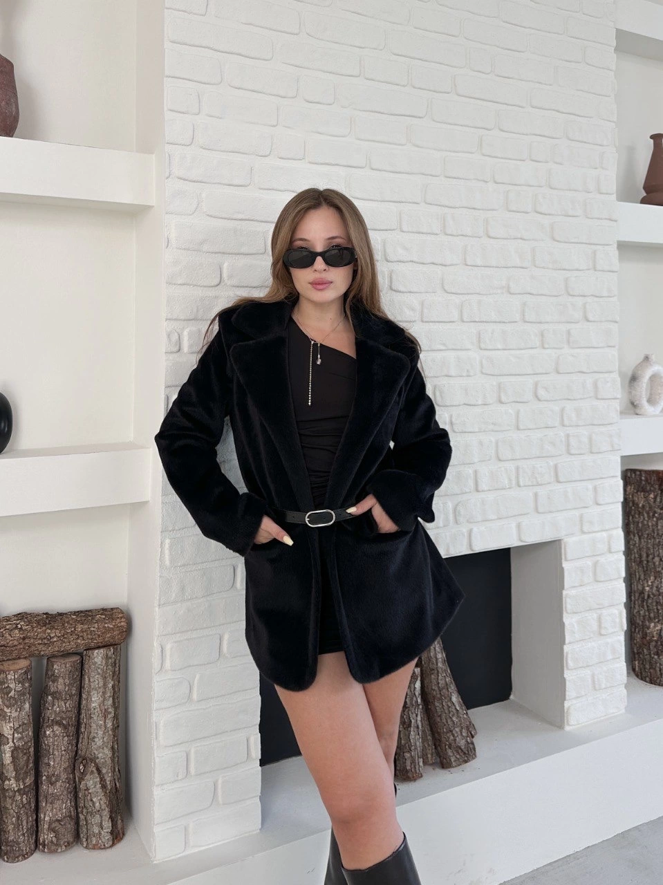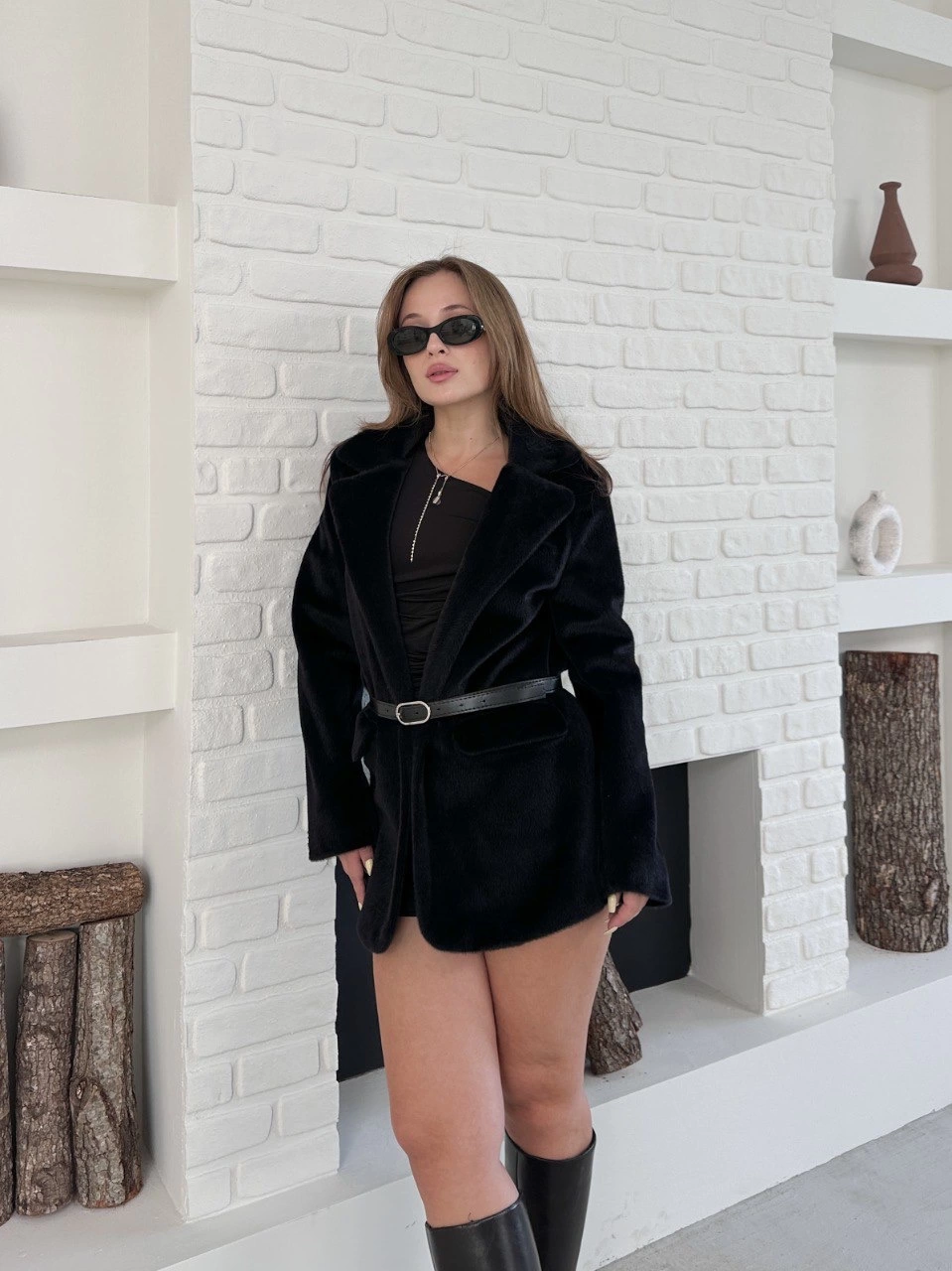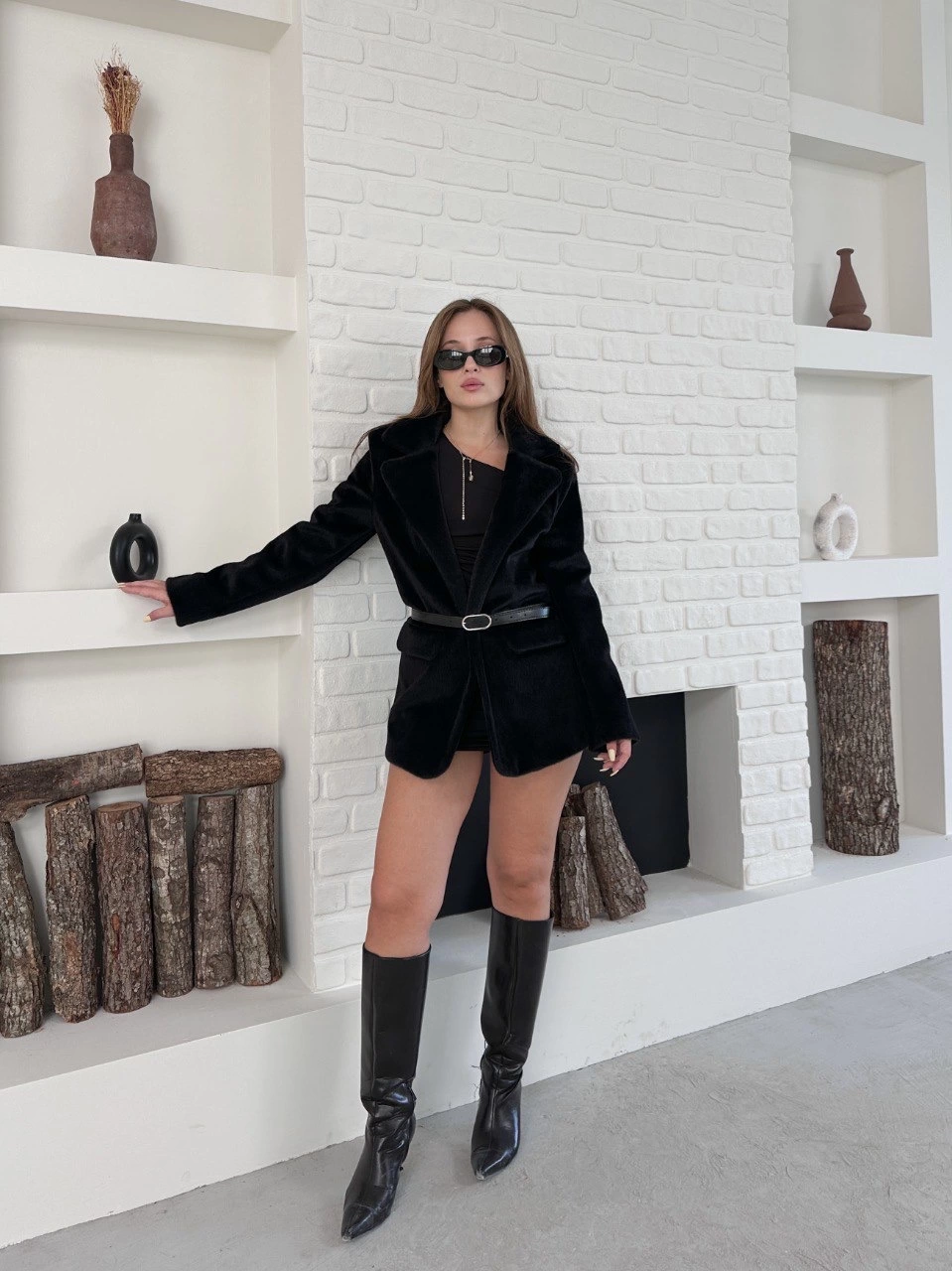 Crop Ceketli Ve Pile Etekli Garnili Takım 10111