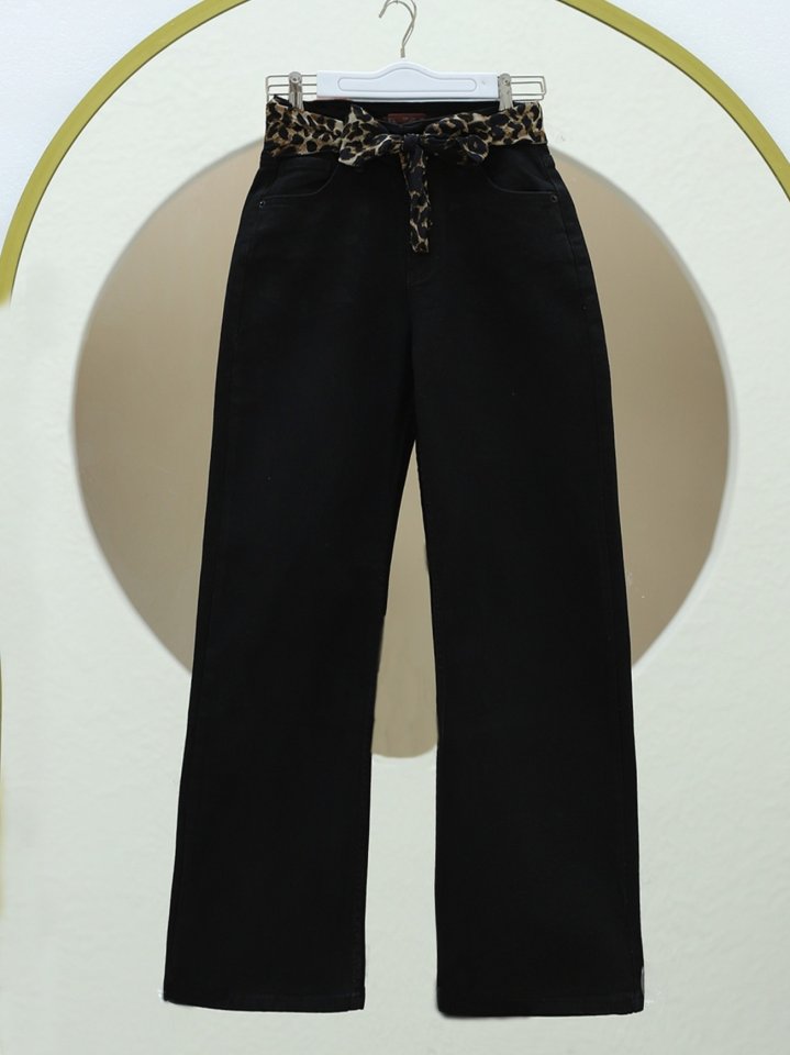 Fular Detaylı Palazzo Kot Pantolon -Siyah