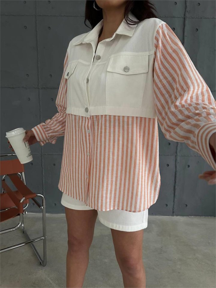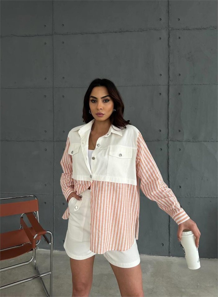 GABARDİN ŞORT - GABARDİN - ÇİZGİLİ KETEN GARNİLİ CEKET TAKIM - Orange