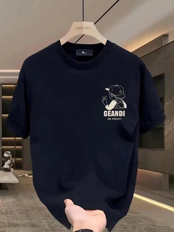 Geniş Kesim Pamuklu Tişört - GANDHI The Project Baskılı, Siyah, Rahat Kesim, Kısa Kollu, Günlük Kıyafet, Her Gün Giyilebilecek Tişört- Siyah