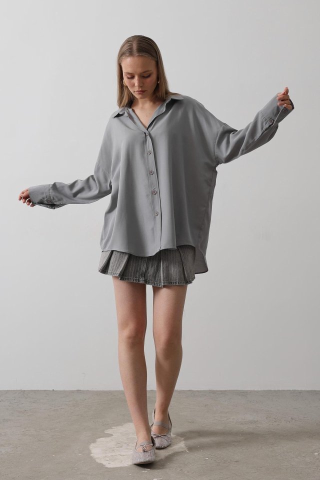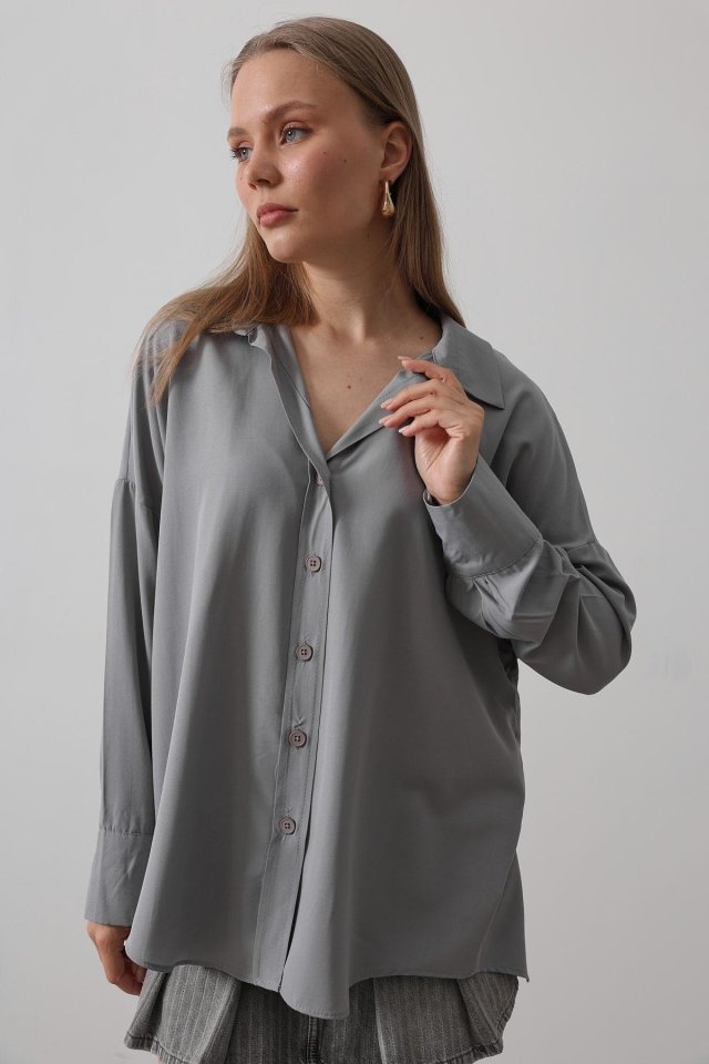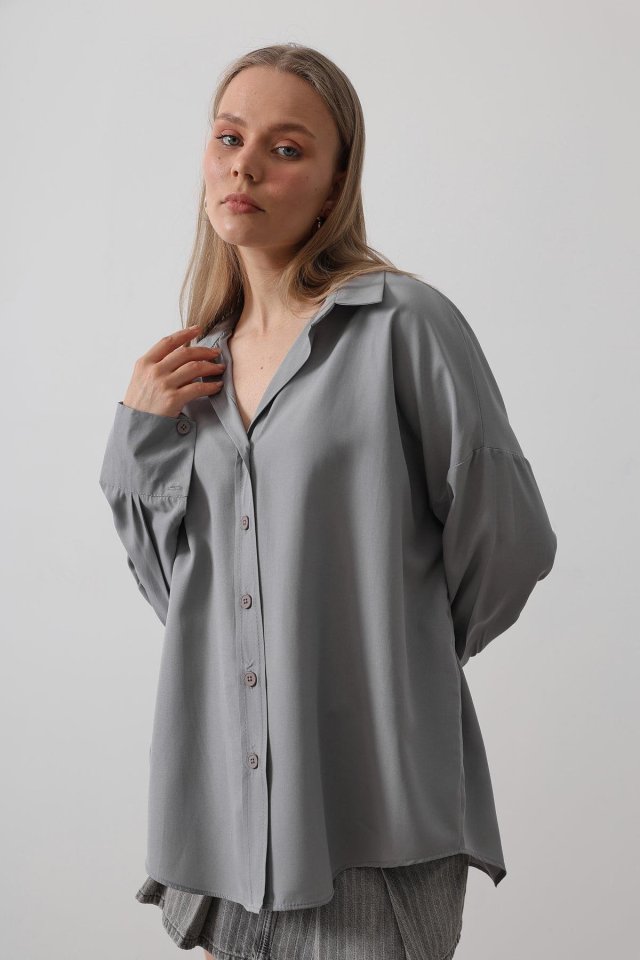 Kadın Uzun Kollu Tek Omuz Askı Detay Salaş Viskon Iki Iplik Bluz