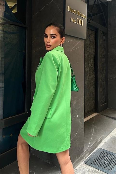 Kadın Kısa Kollu Yakası Açık Katlı Bürümcük Balon Elbise