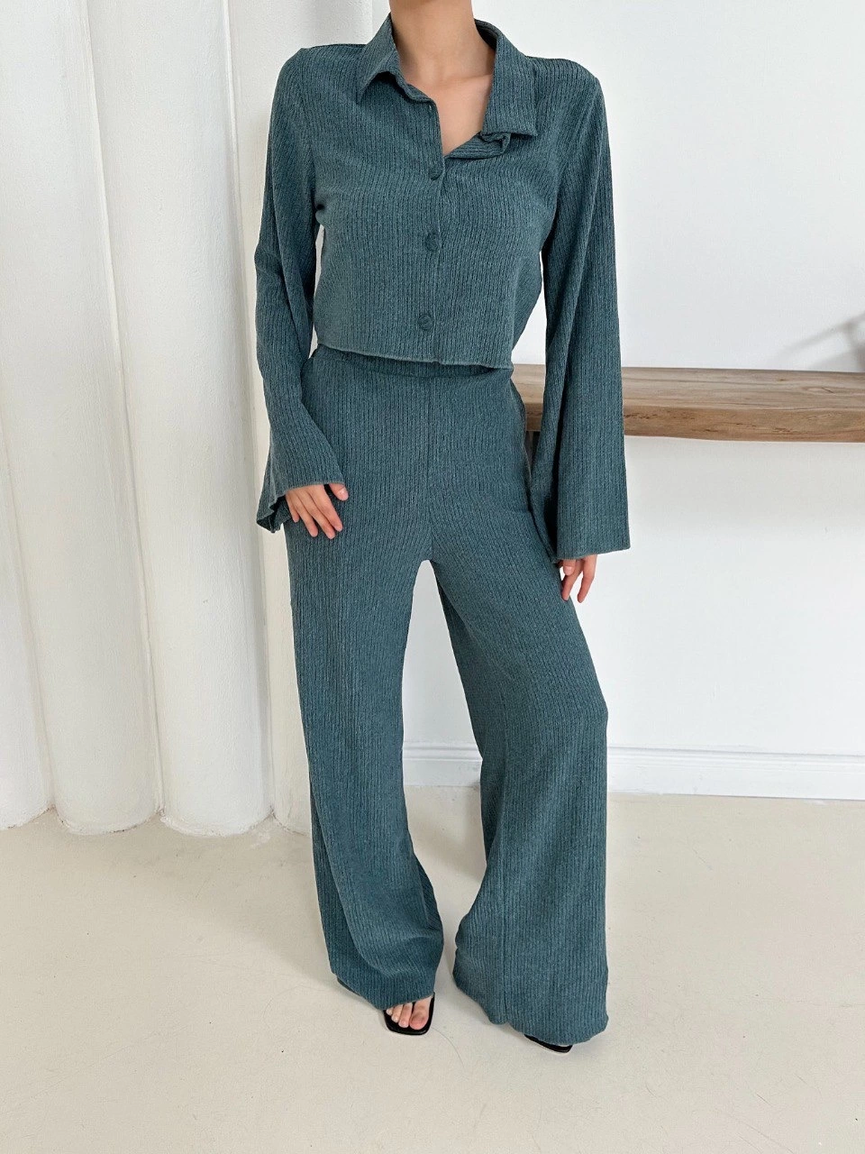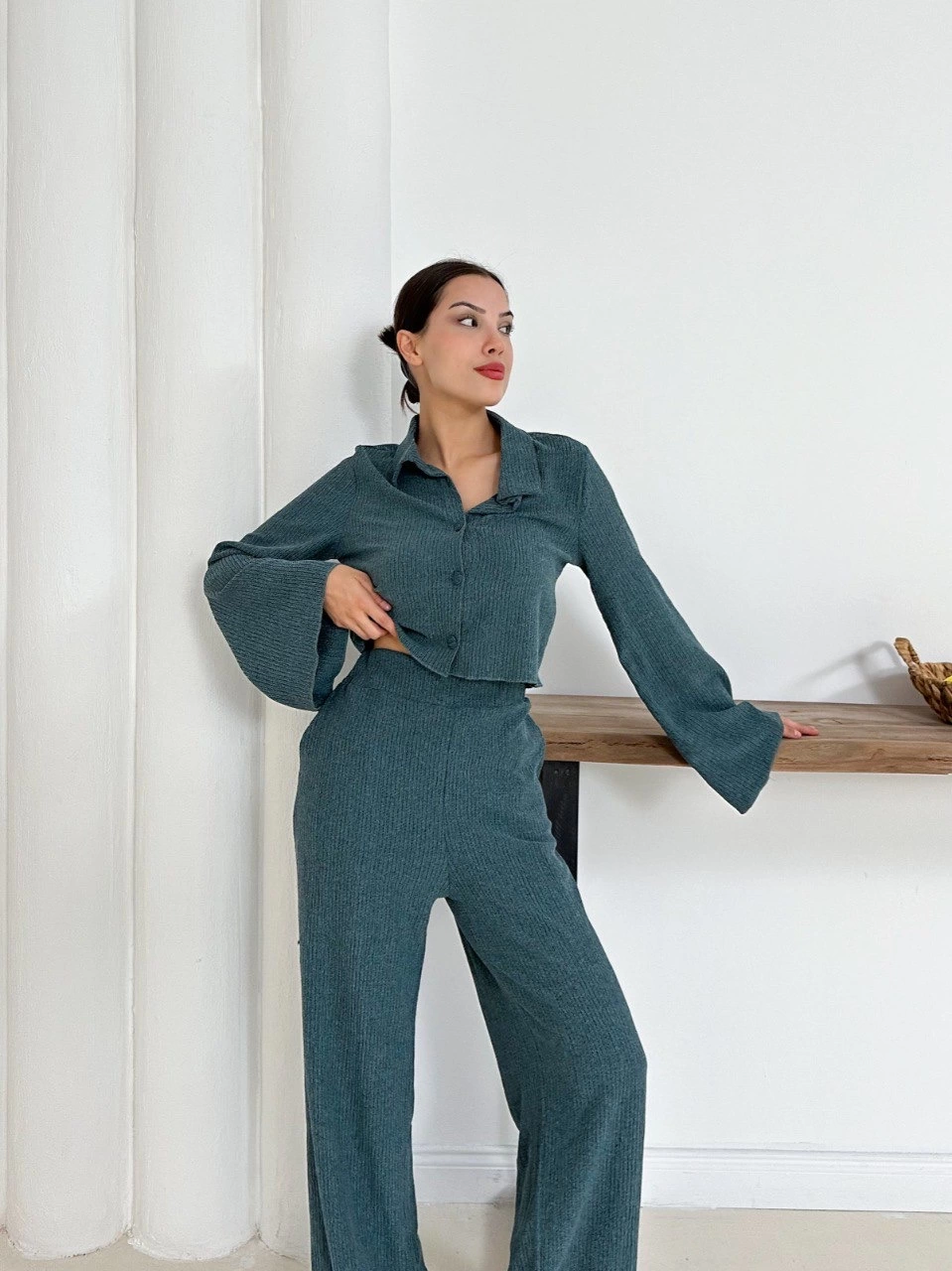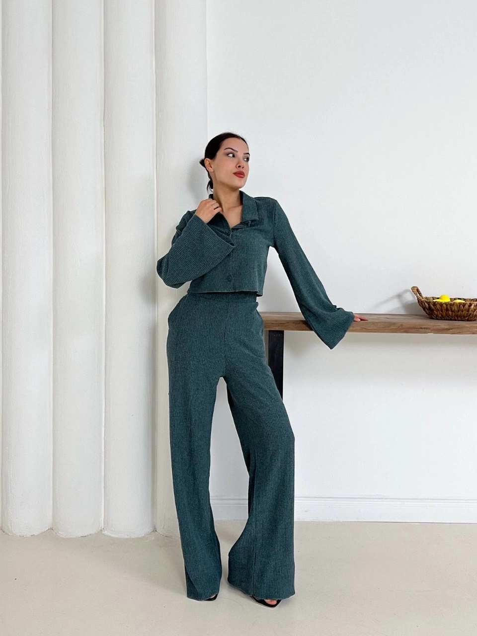 Gömlek yaka kaplama düğmeli takım petrol yeşili st265866