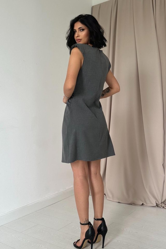 Gri Yanı Büzgülü Sıfır Kol Elbise