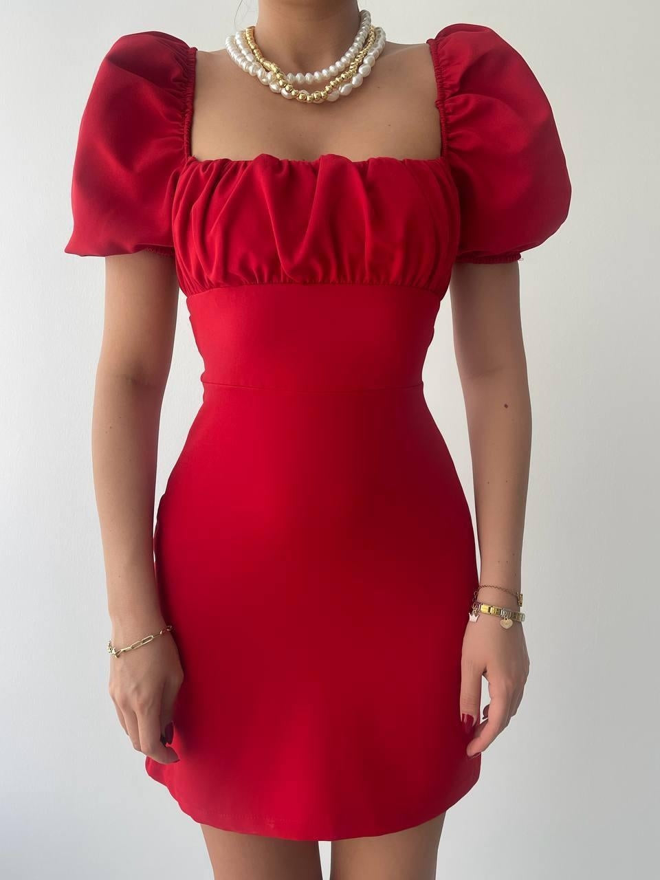 Kadın Madonna Mendil Yaka Fırsat ürün Büzgülü Mini Elbise