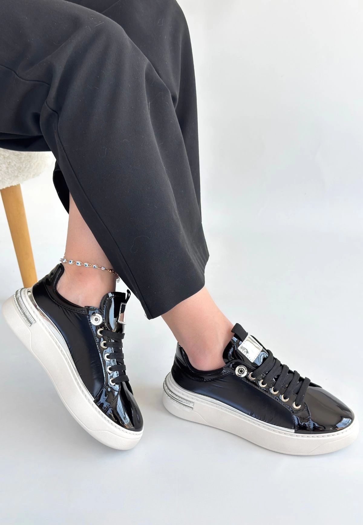 Hley Siyah Rugan Paraşüt Detaylı Bağcıklı Spor Ayakkabı