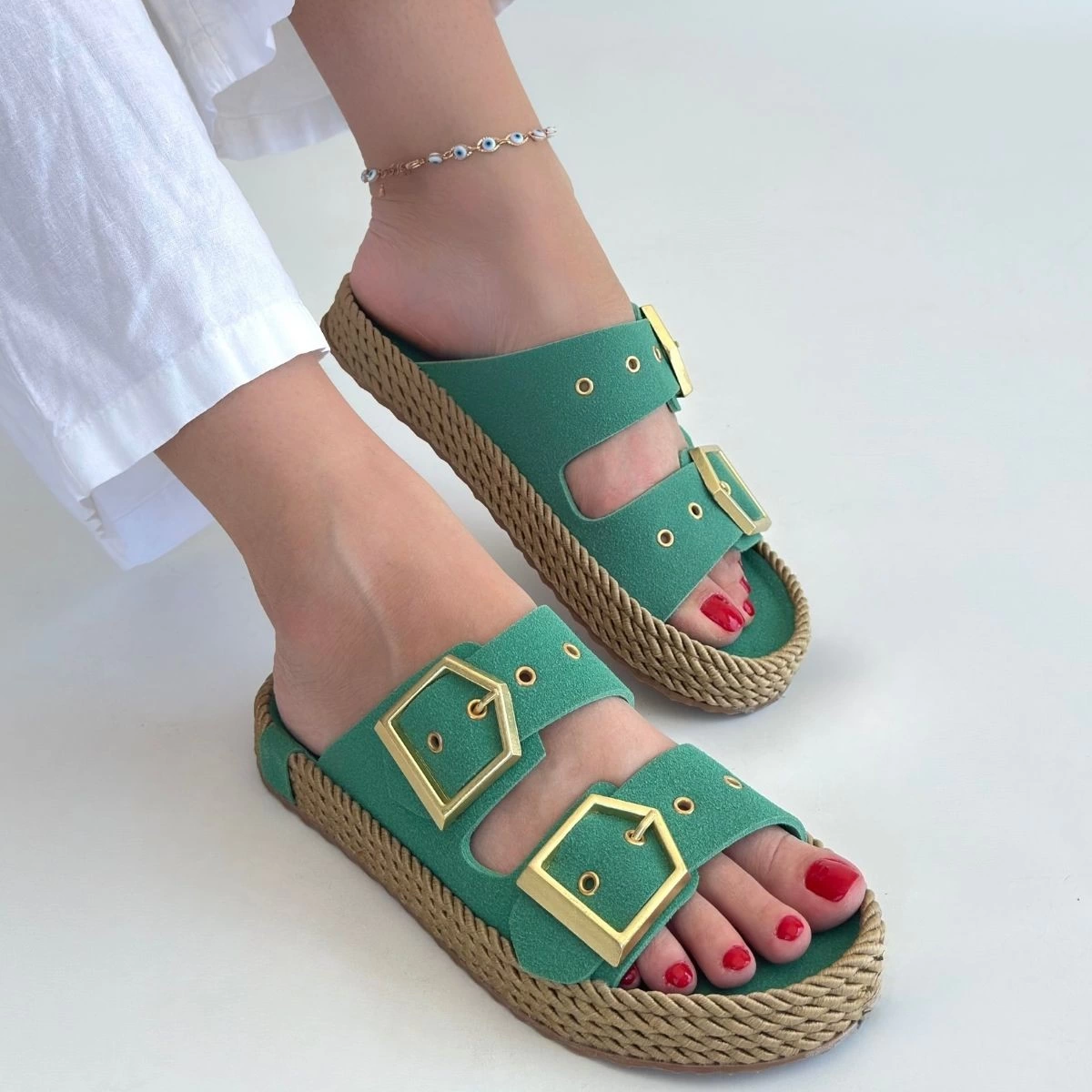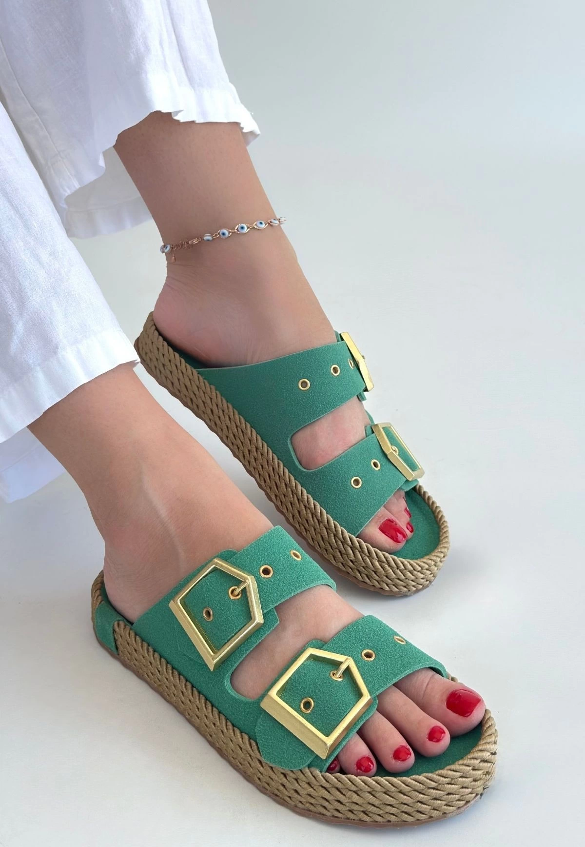 İces Yeşil Nubuk Terlik