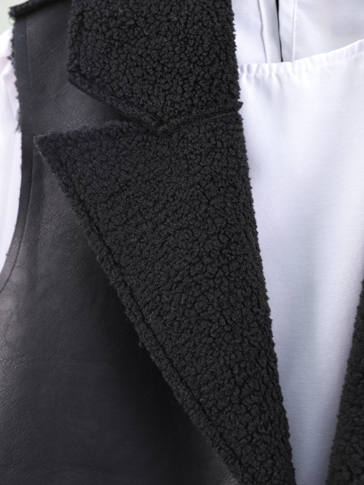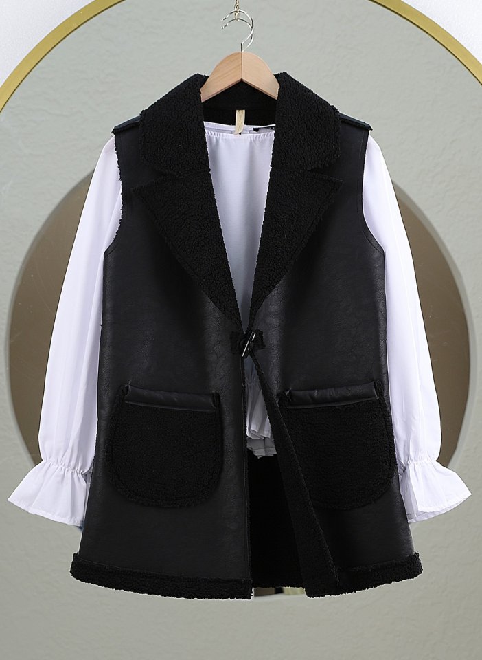 İçi Kuzu Peluş Çift Cepli Yelek -Siyah