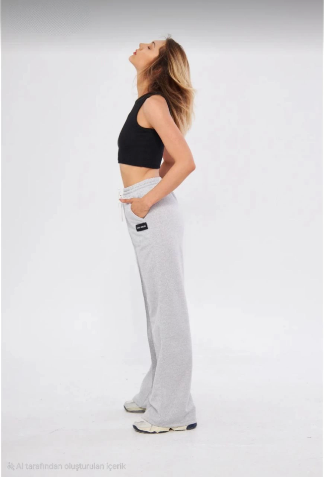 İki Iplik Bol Paça Eşofman Pantalon - Gri