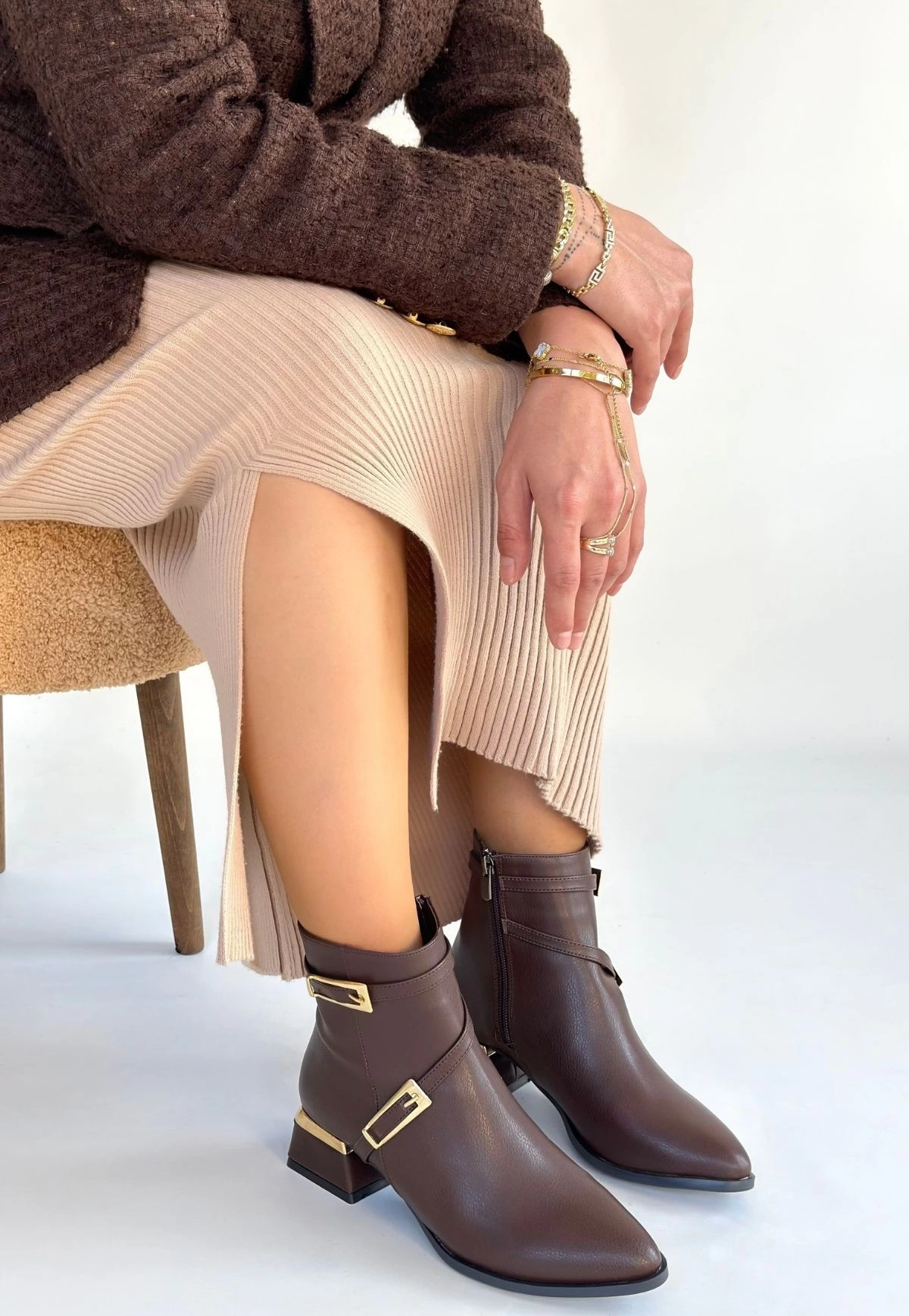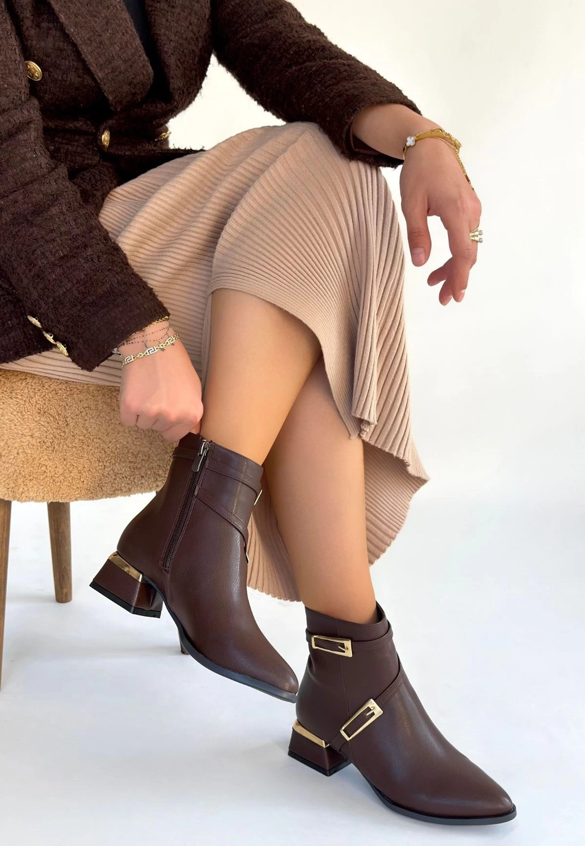İnay Kahverengi Cilt Topuklu Bot