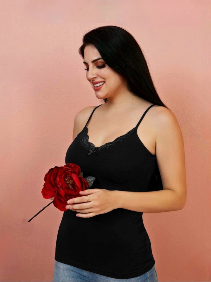 İp Askılı Dantelli Atlet -Siyah