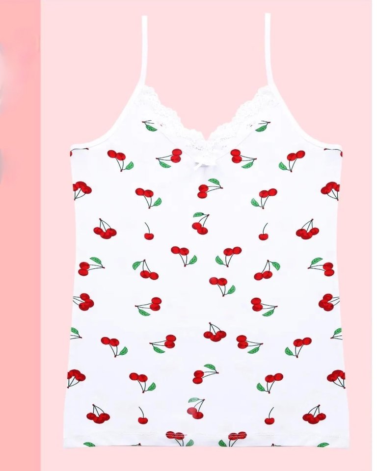 İp Askılı Kiraz Desenli Dantelli Atlet -Beyaz