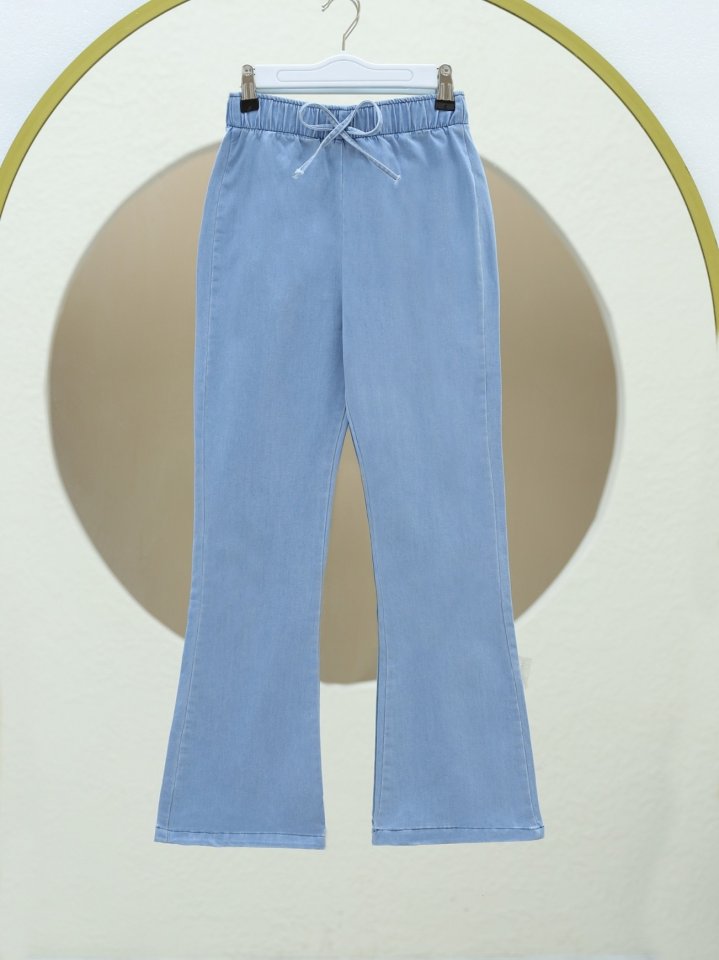 İspanyol Paça Bağcık Detaylı Kot Pantolon -Açık Mavi