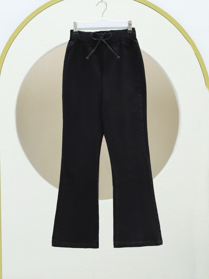 İspanyol Paça Bağcık Detaylı Kot Pantolon -Siyah