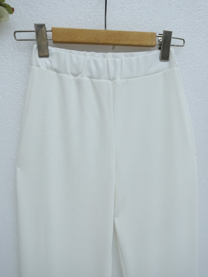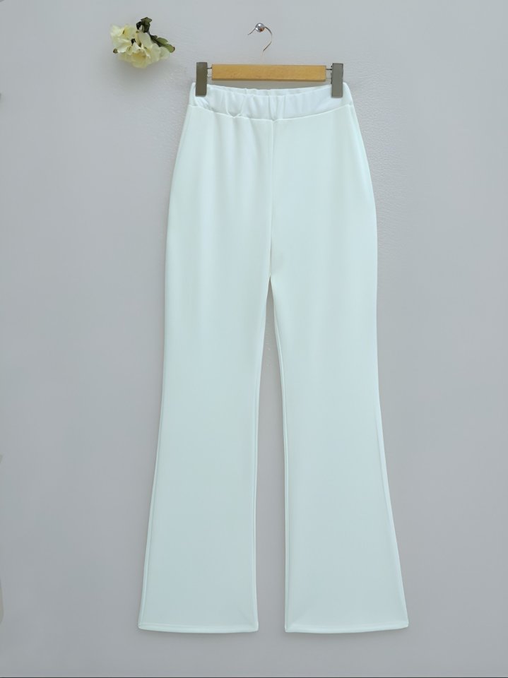 İthal Kumaş İspanyol Paça Pantolon -Beyaz