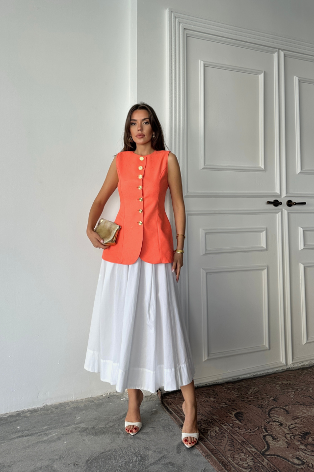 JAKAR KETEN YELEK BELDEN OTURTMALI GOLD DÜĞMELİ - Orange
