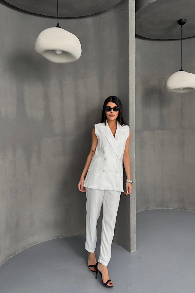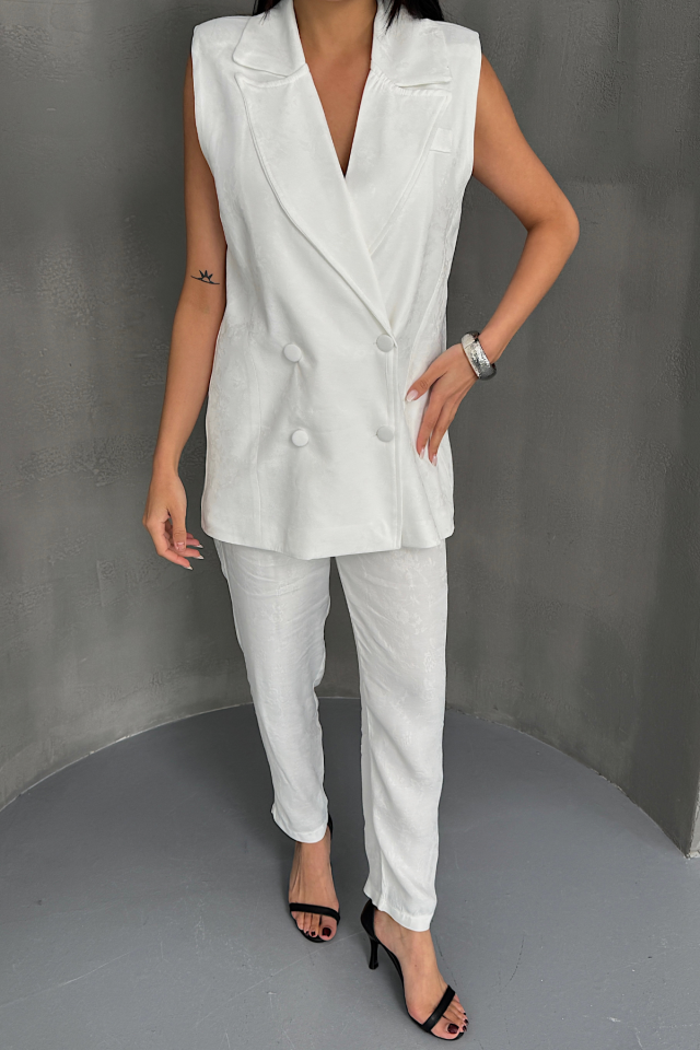 JAKAR KUMAŞ YELEK - PANTOLON TAKIM - Beyaz