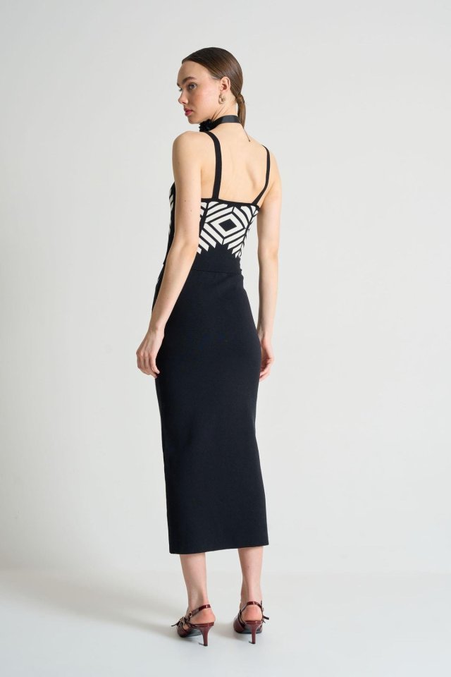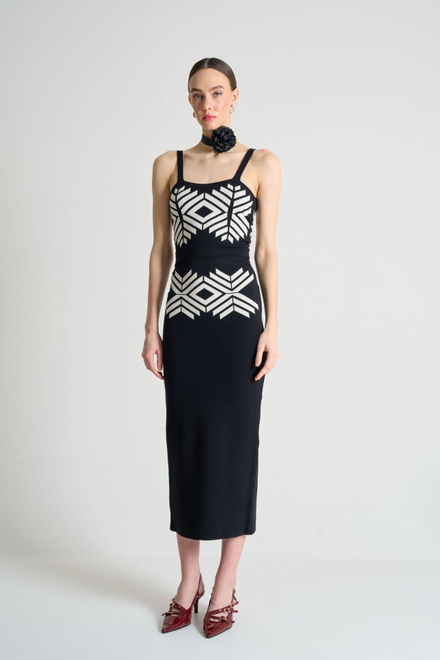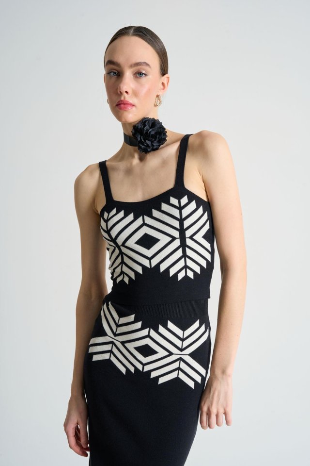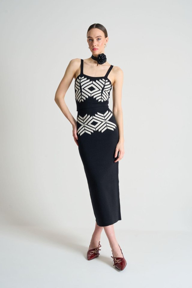 Jakarlı İnce AskılıTriko Takım - Siyah-Beyaz Kayısı