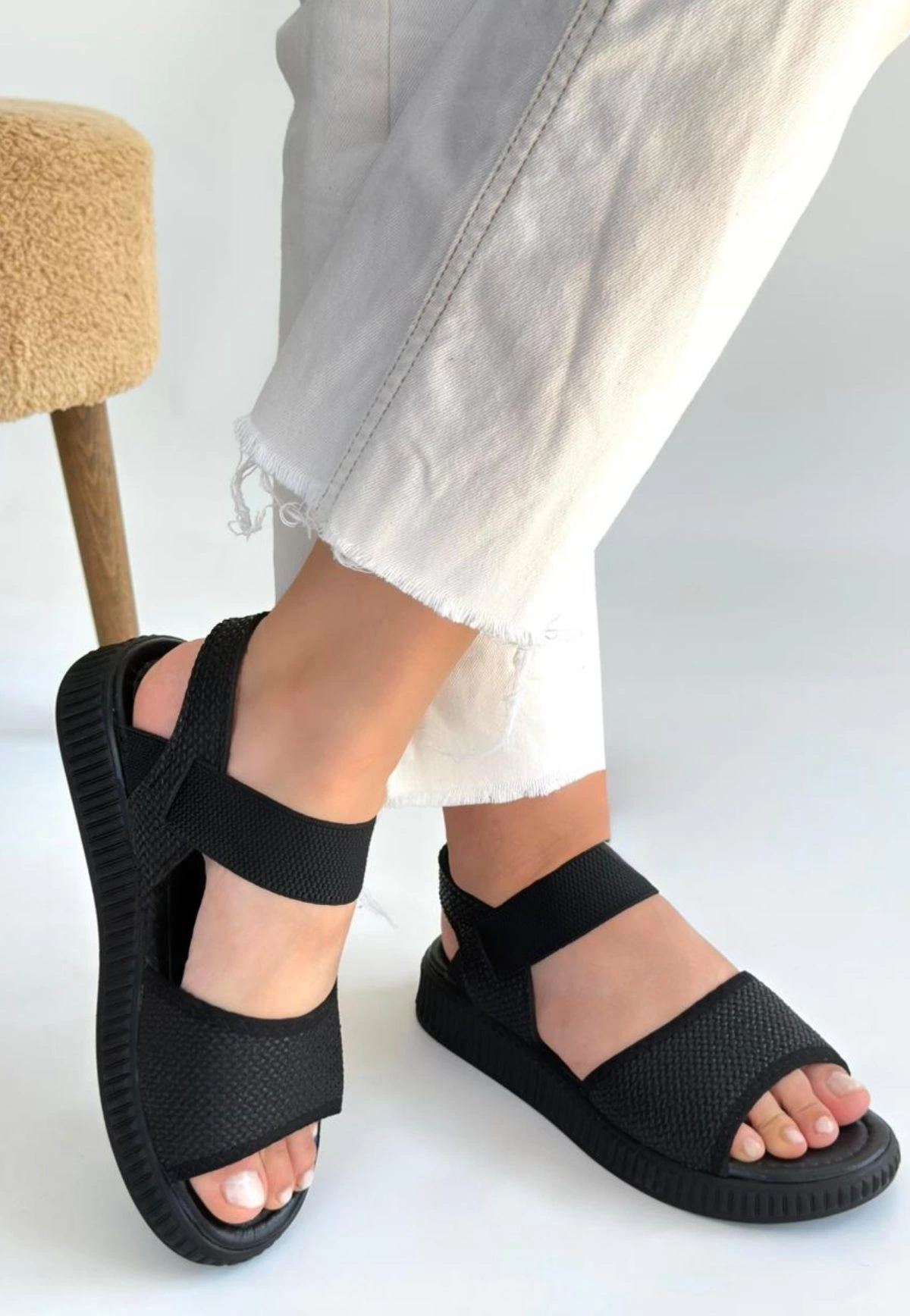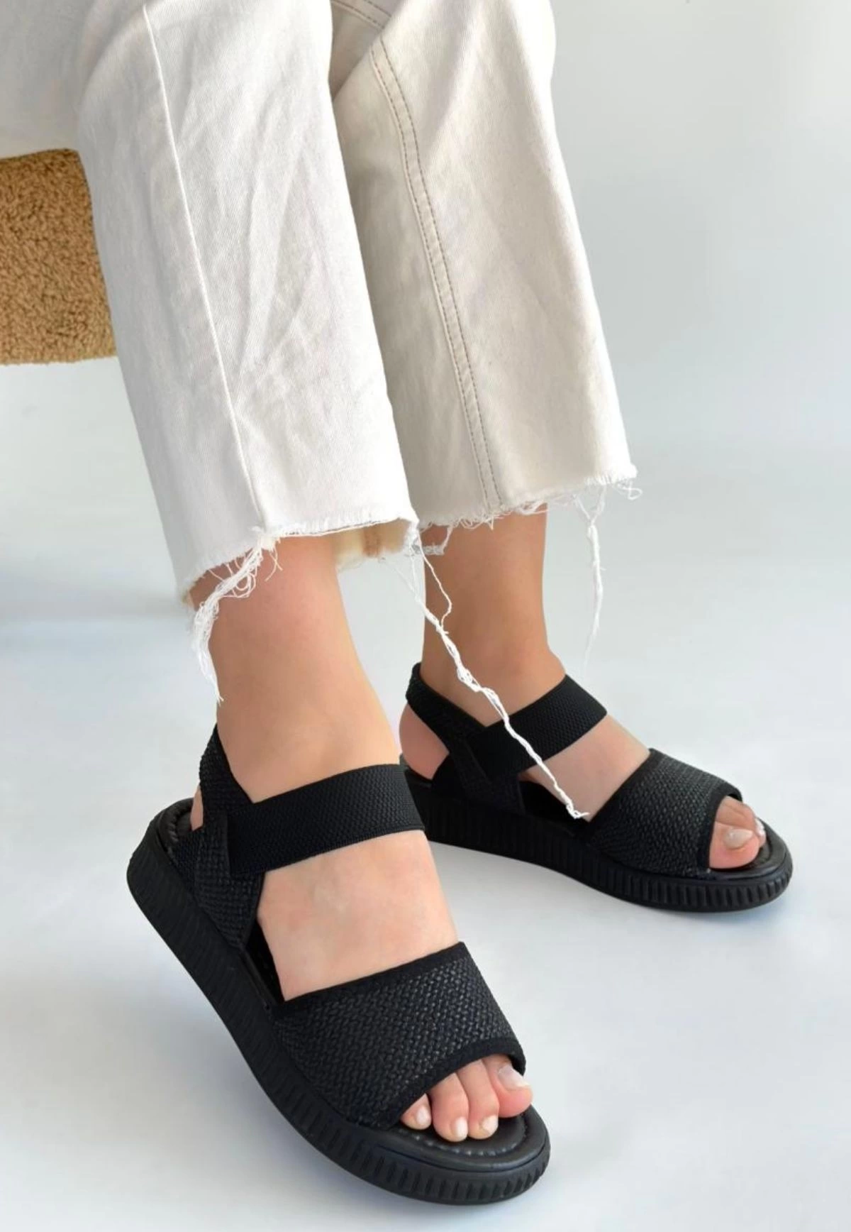 Jake Siyah Hasır Cilt Sandalet
