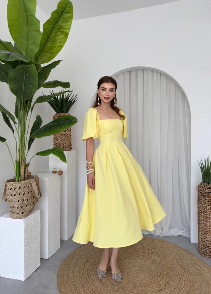 Kadın Kısa Kollu Yakası Açık Katlı Bürümcük Balon Elbise