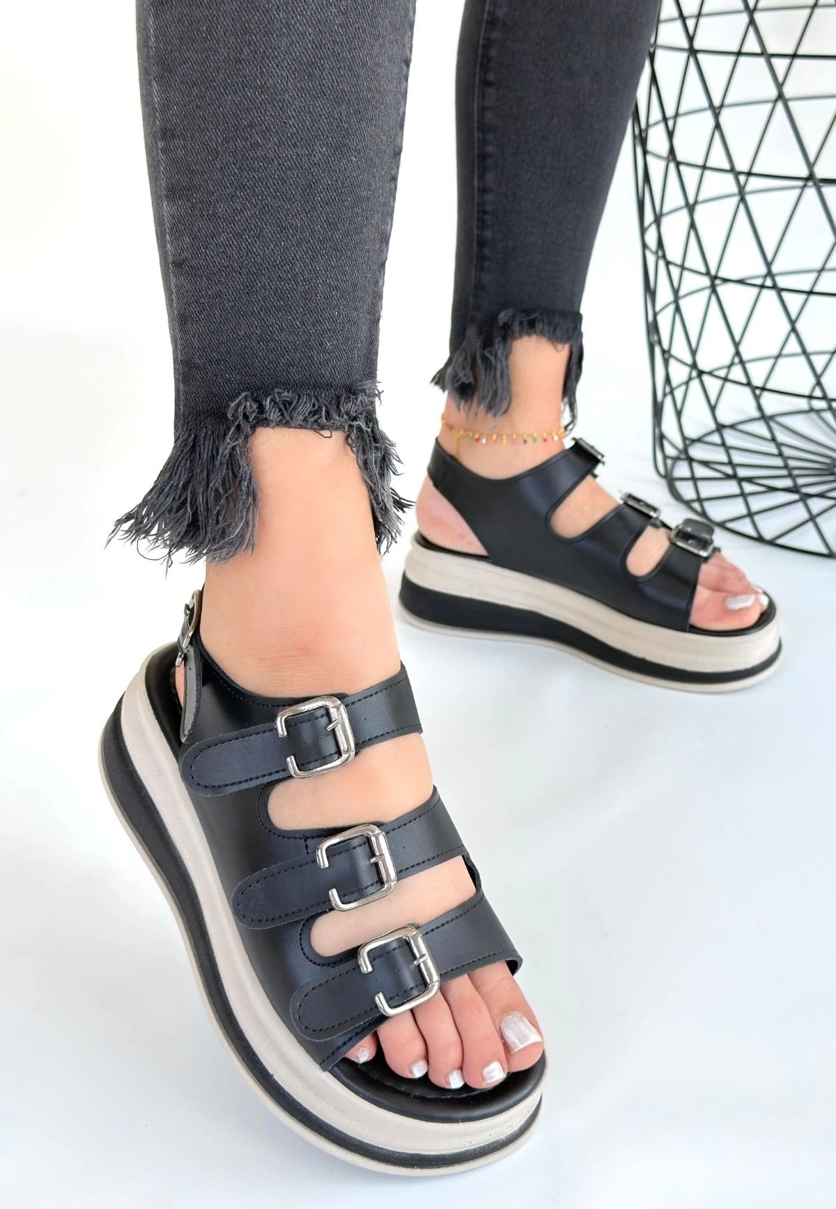 Jatay Siyah Cilt Sandalet