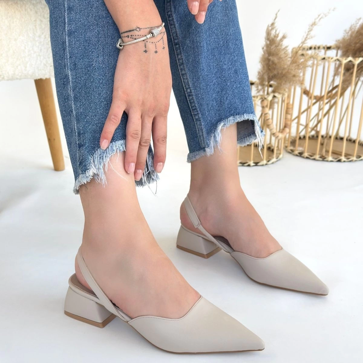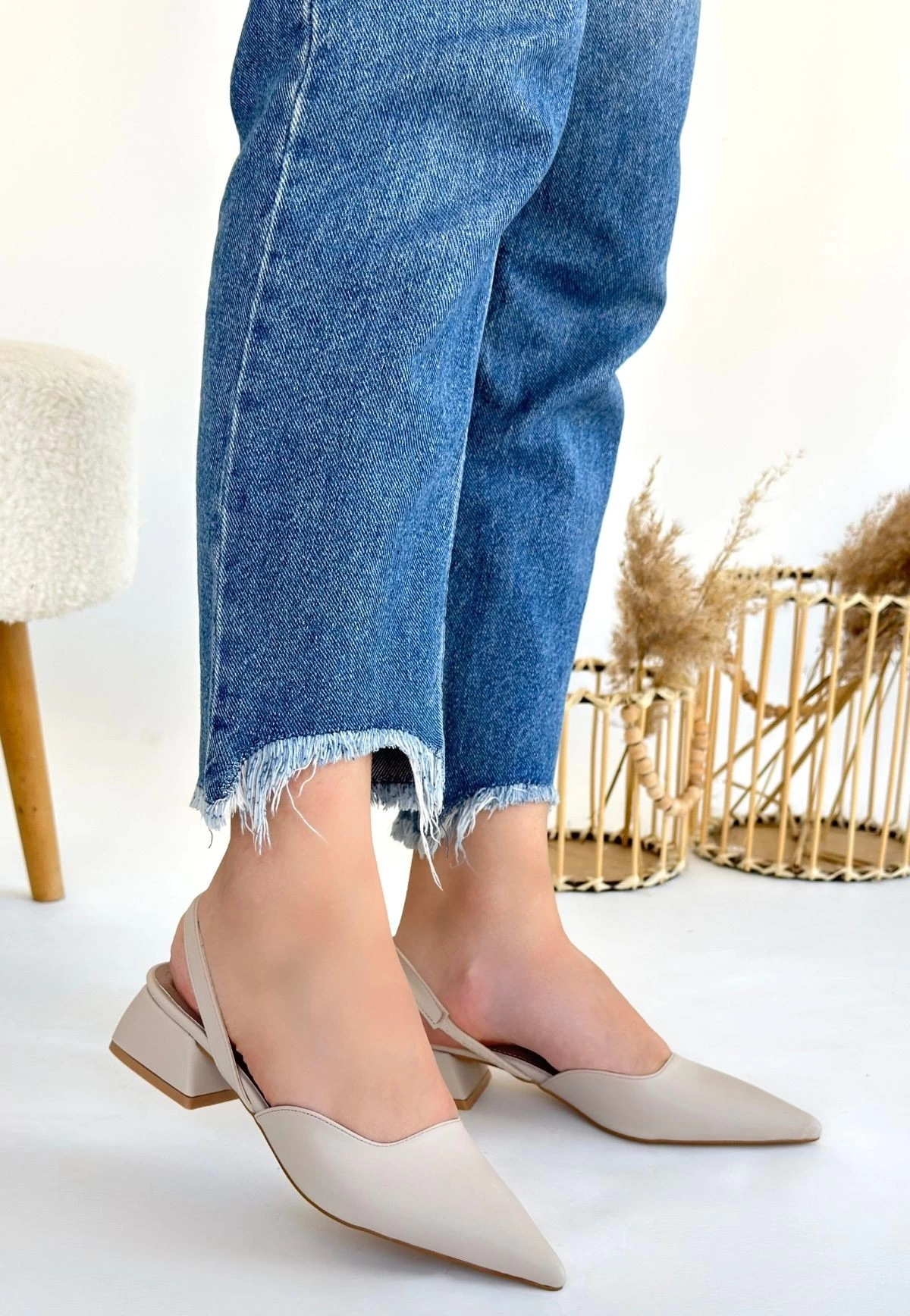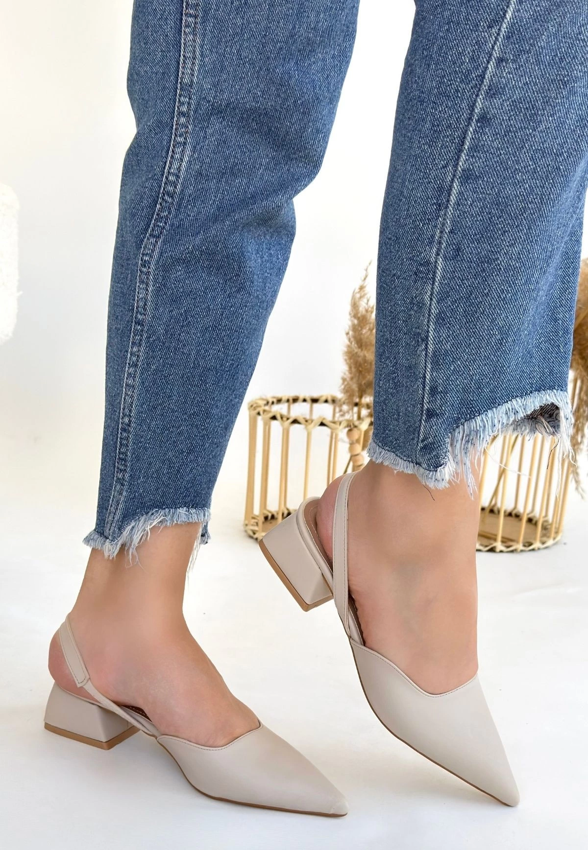 Jenti Bej Cilt Topuklu Ayakkabı
