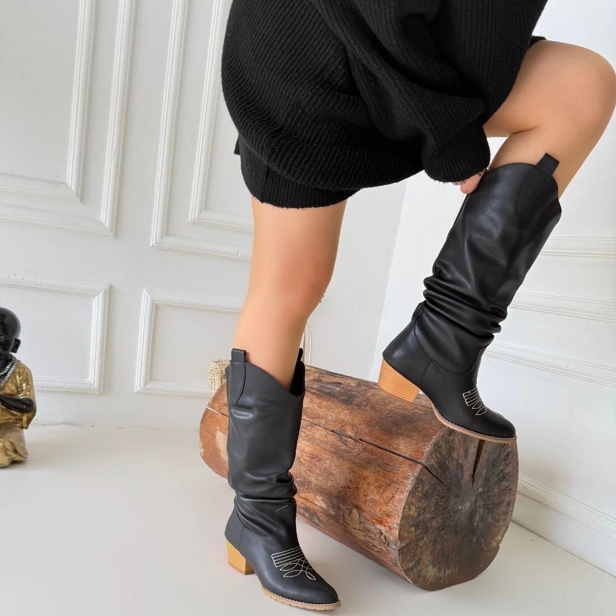 Jeoni Siyah Cilt Topuklu Çizme