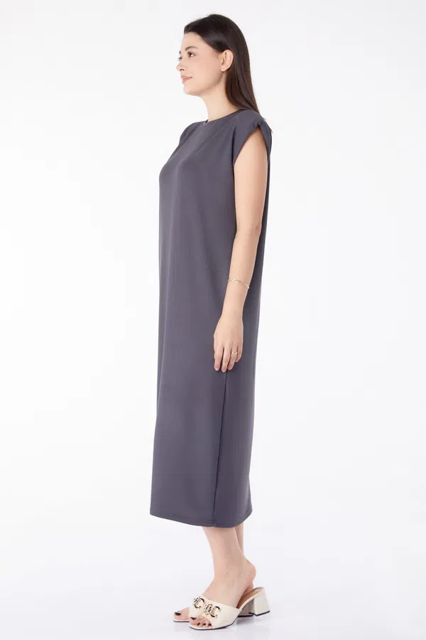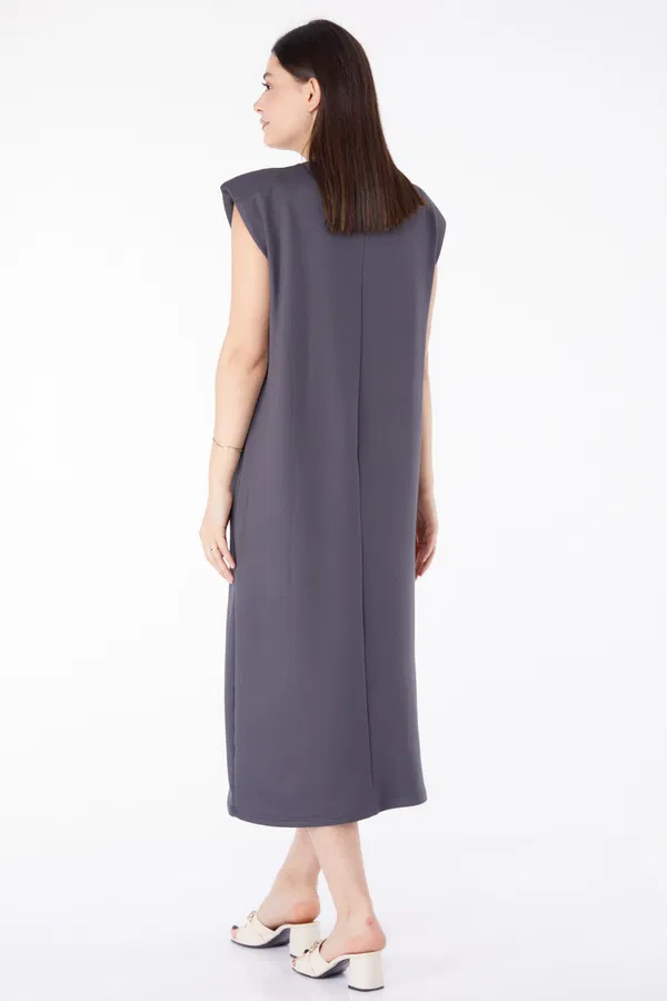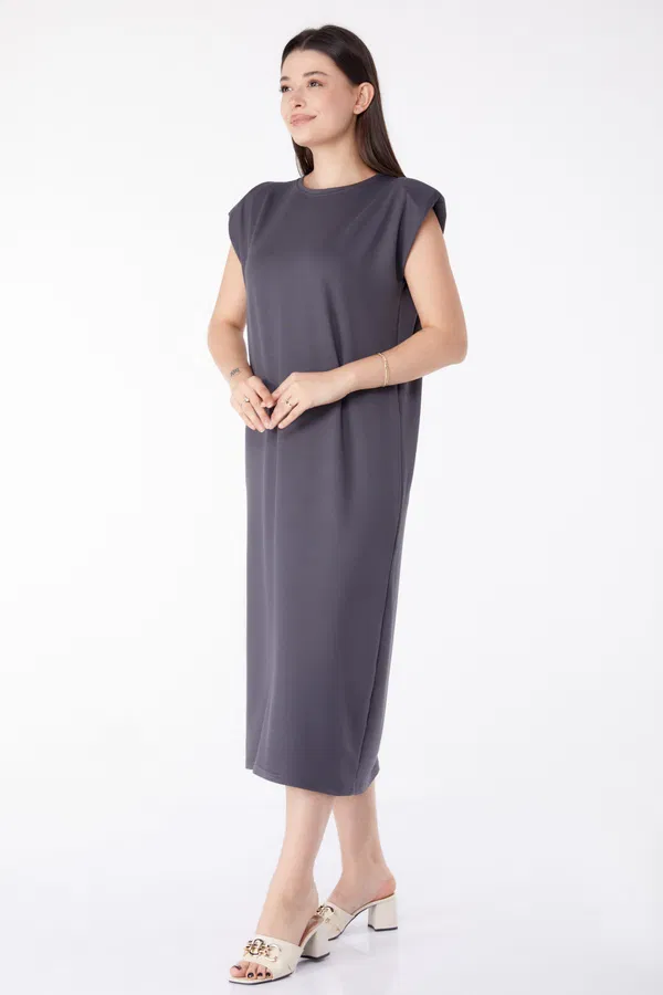 Kadın Kısa Kollu Yakadan Ve Etekten Fermuarlı Midi Viskon Iki Iplik Elbise