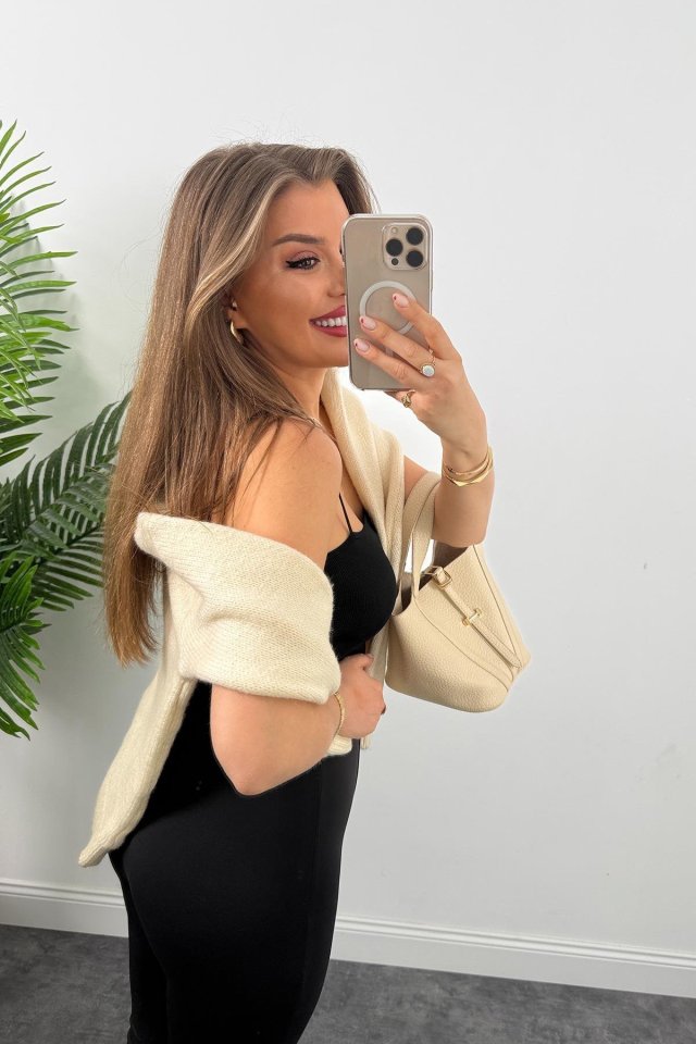 Kadın Uzun Kollu Tek Omuz Askı Detay Salaş Viskon Iki Iplik Bluz
