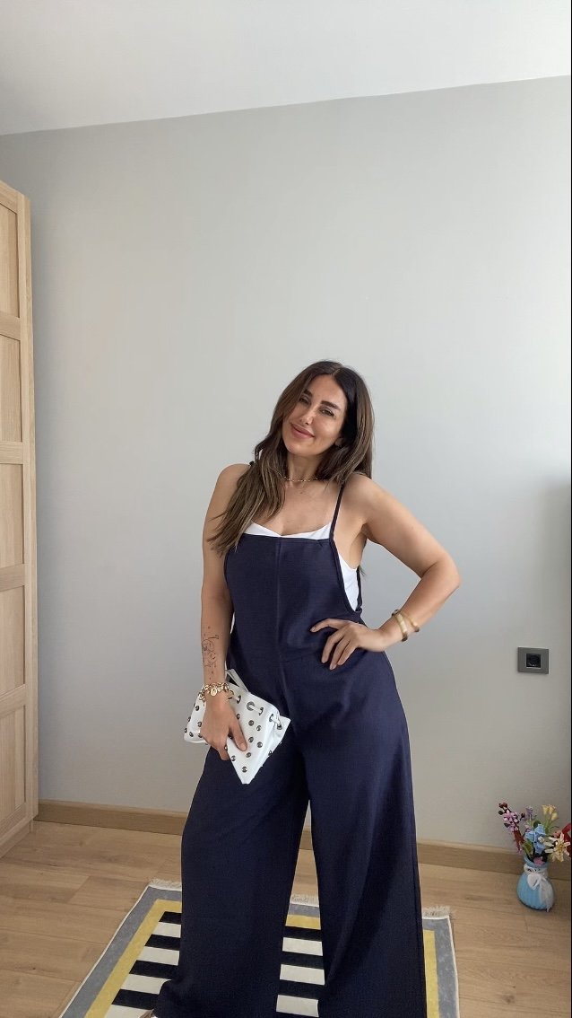 Kadın Askılı Yandan Fermuarlı Geniş Paçalı Valencia Tulum