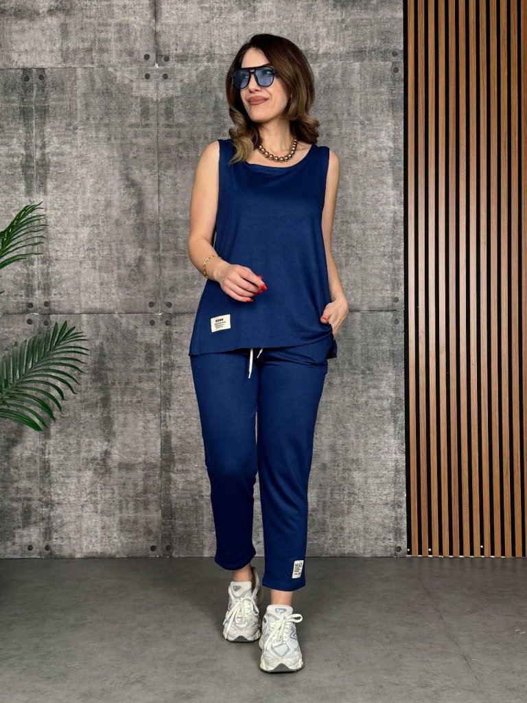 Kadın Askılı Yuvarlak Yaka Viskon Iki Iplik Bluz Ve Eşofman Altı Ikili Takım
