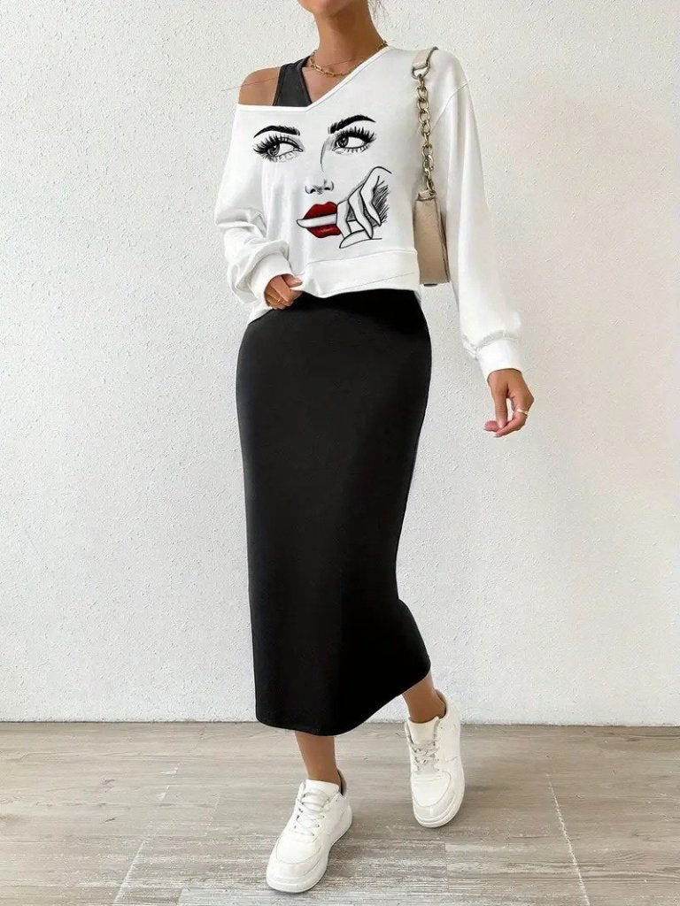 Kadın Uzun Kollu Tek Omuz Askı Detay Salaş Viskon Iki Iplik Bluz